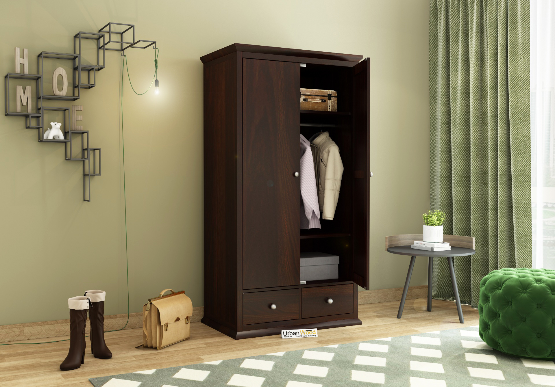 Highly spacious, Adam 2 Door Multi-Utility Wardrobe is a perfect example of simplicity. Its simple and straight silhouette structure provides ample storage to accommodate all the essentials. With attractive walnut-finish wooden patterns, this wardrobe design provides an engaging touch at home. With four different sections and two deep drawers, all your storage needs can be fulfilled through this.