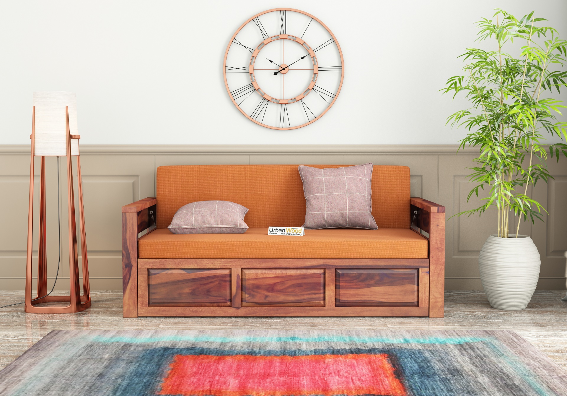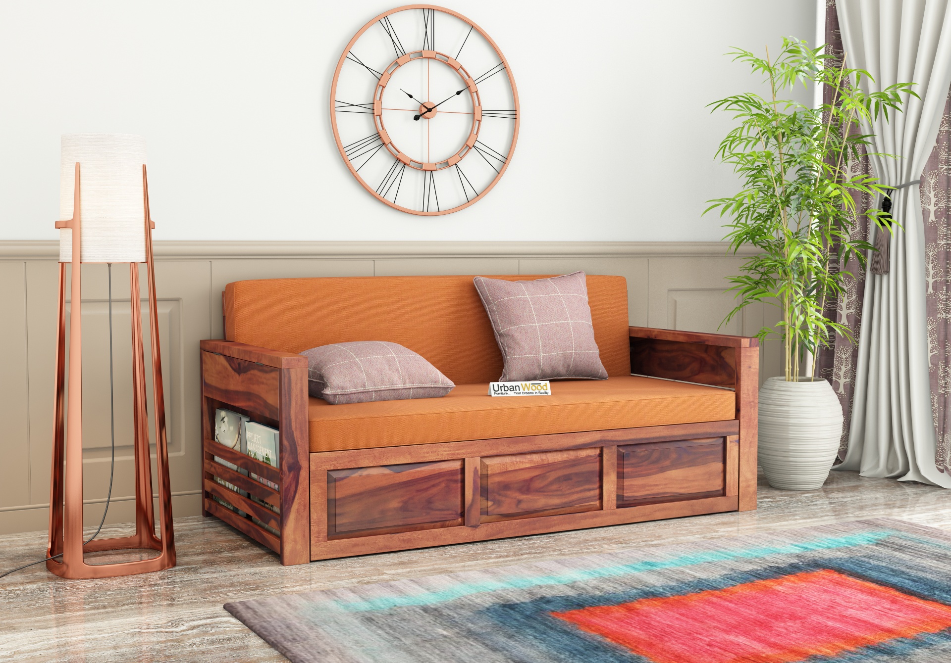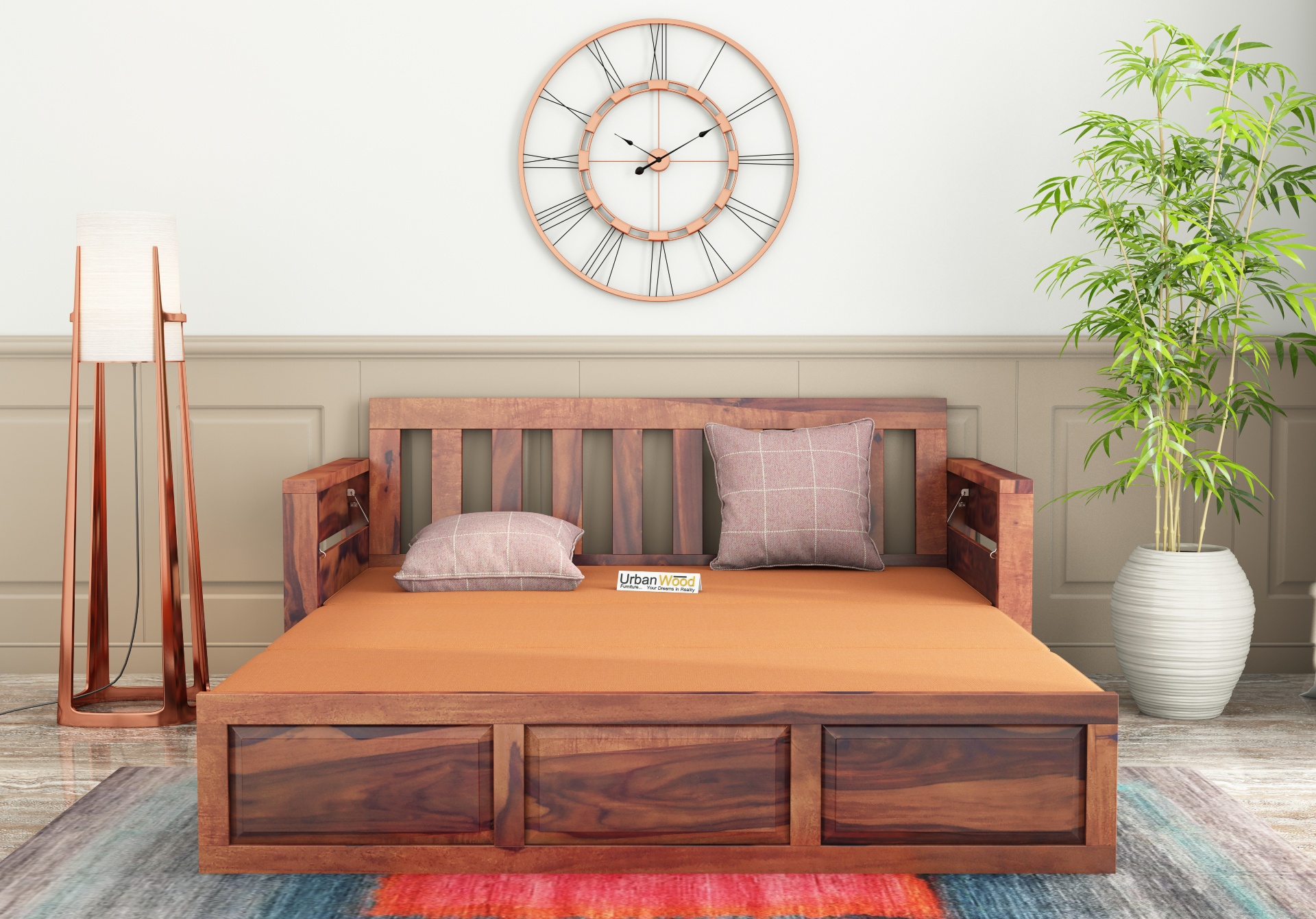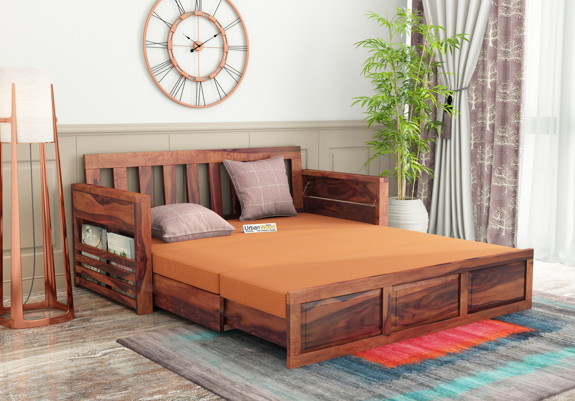 This sofa cum bed is made with Sheesham wood which is durable, weather-resistant, and therefore, long-lasting.