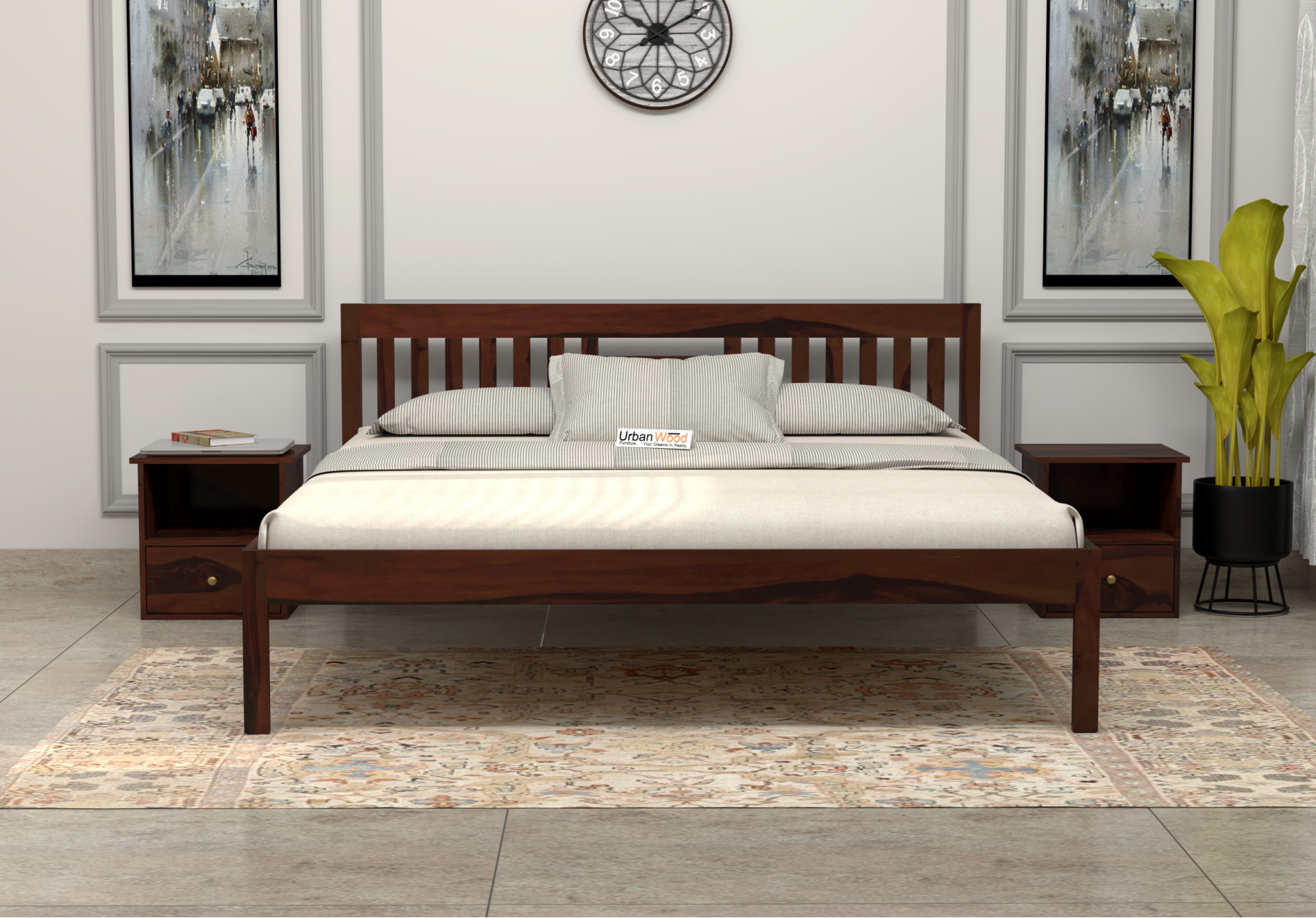 Generic Name -Anavi Without Storage Bed (Queen Size, Walnut Finish)