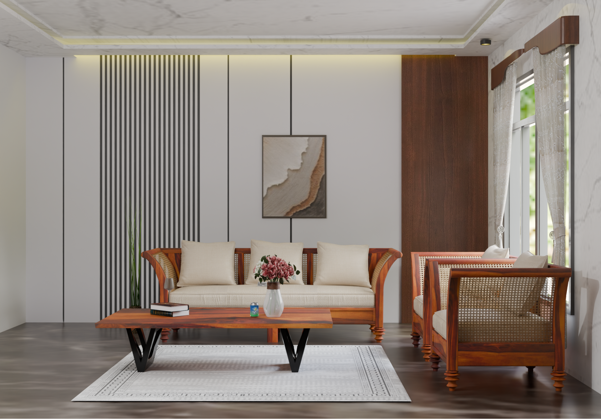 Generic Name -Arcadia 3+1+1 Seater Wooden Sofa Set (Honey Finish)