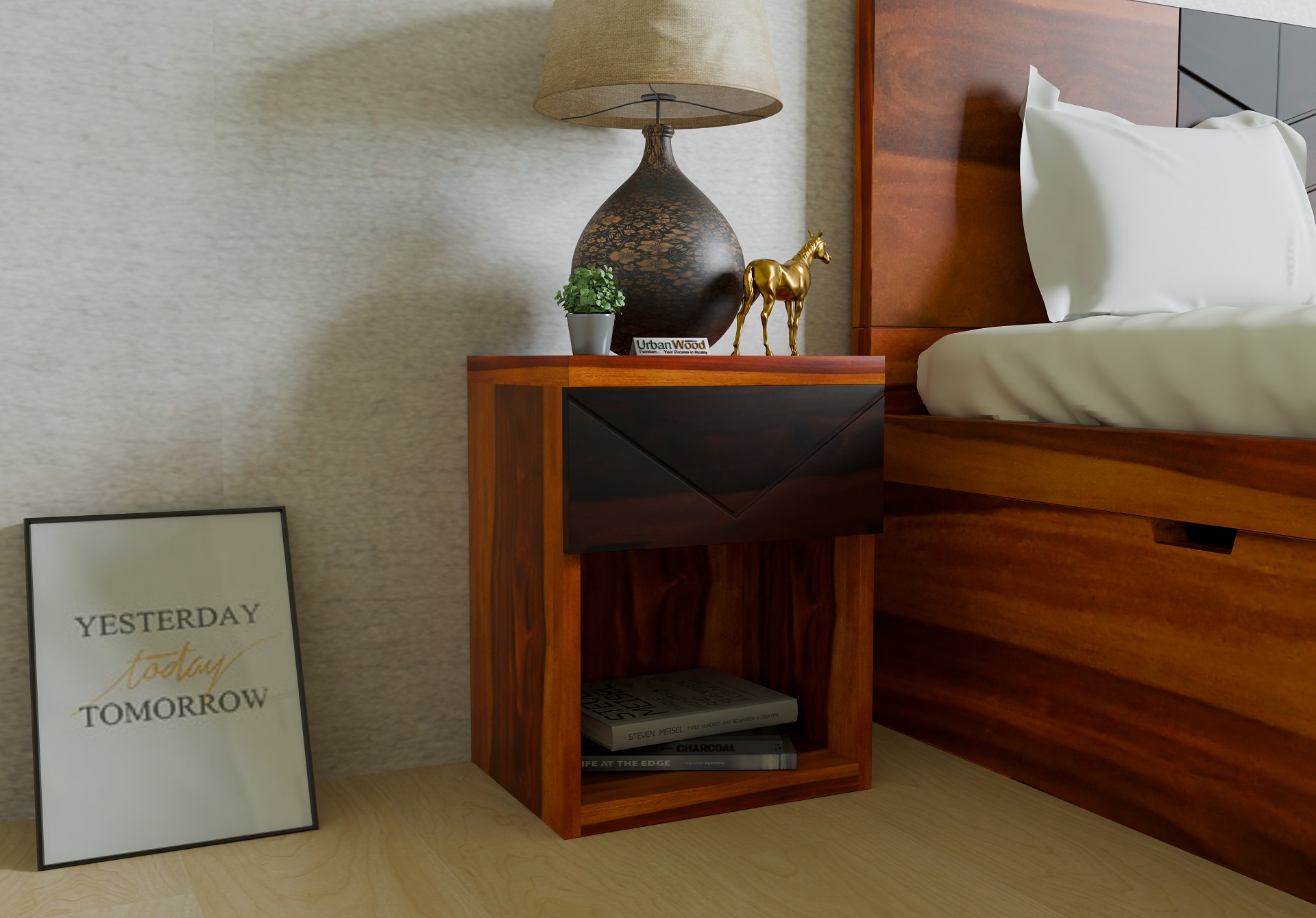 Generic Name -Arka Bedside Table (Honey Finish)