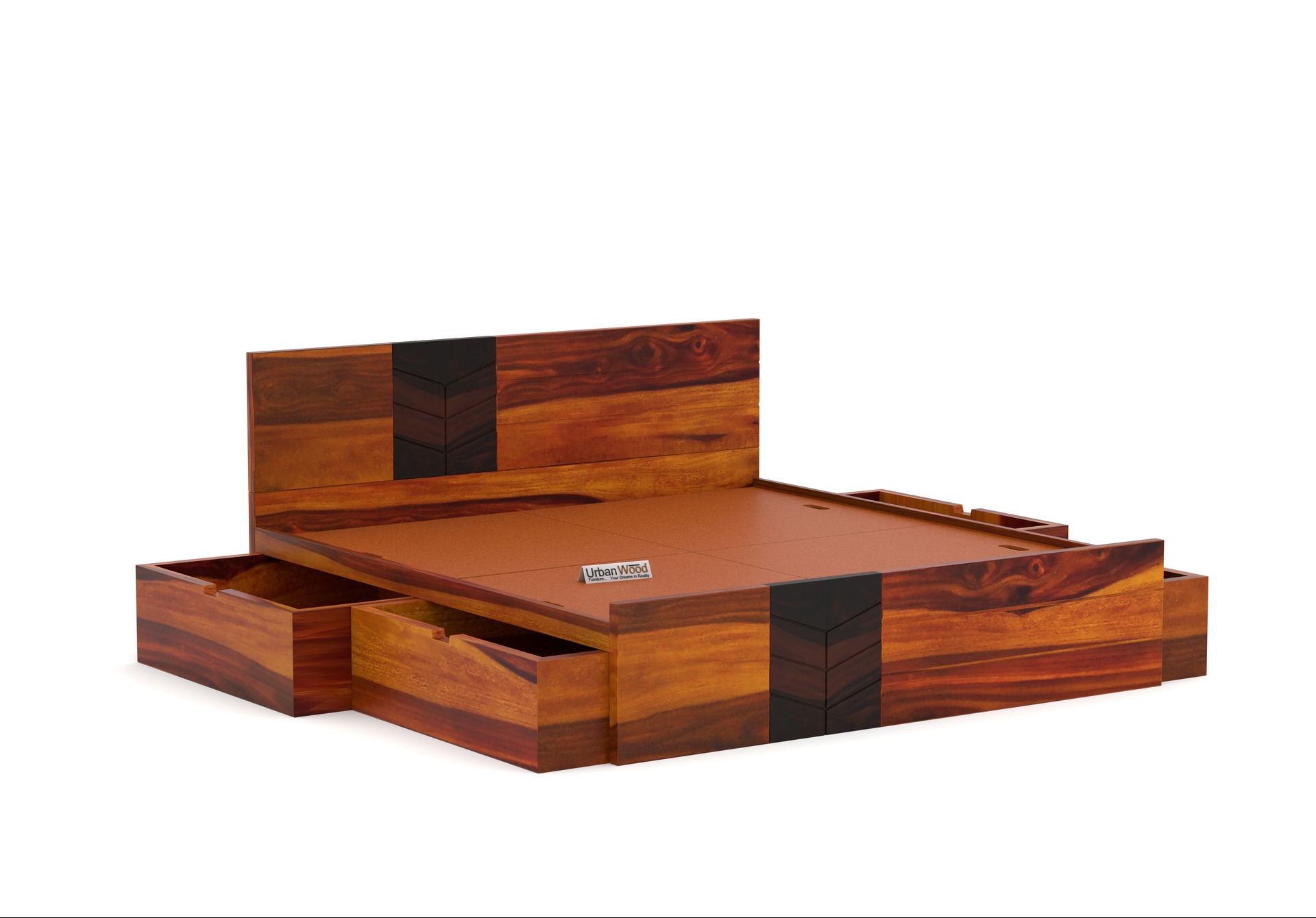 Arka Drawer Storage Bed (Queen Size, Honey Finish)