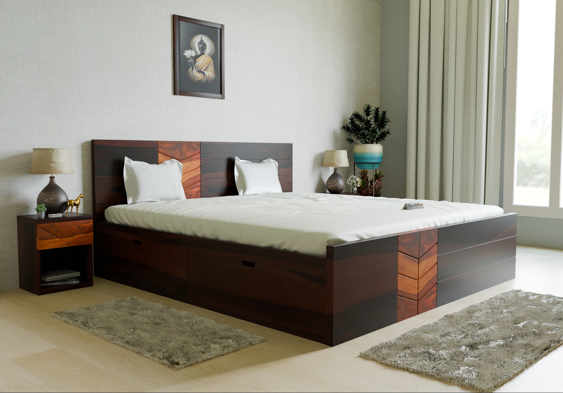 Generic Name -Arka Drawer Storage Bed (Queen Size, Walnut Finish)