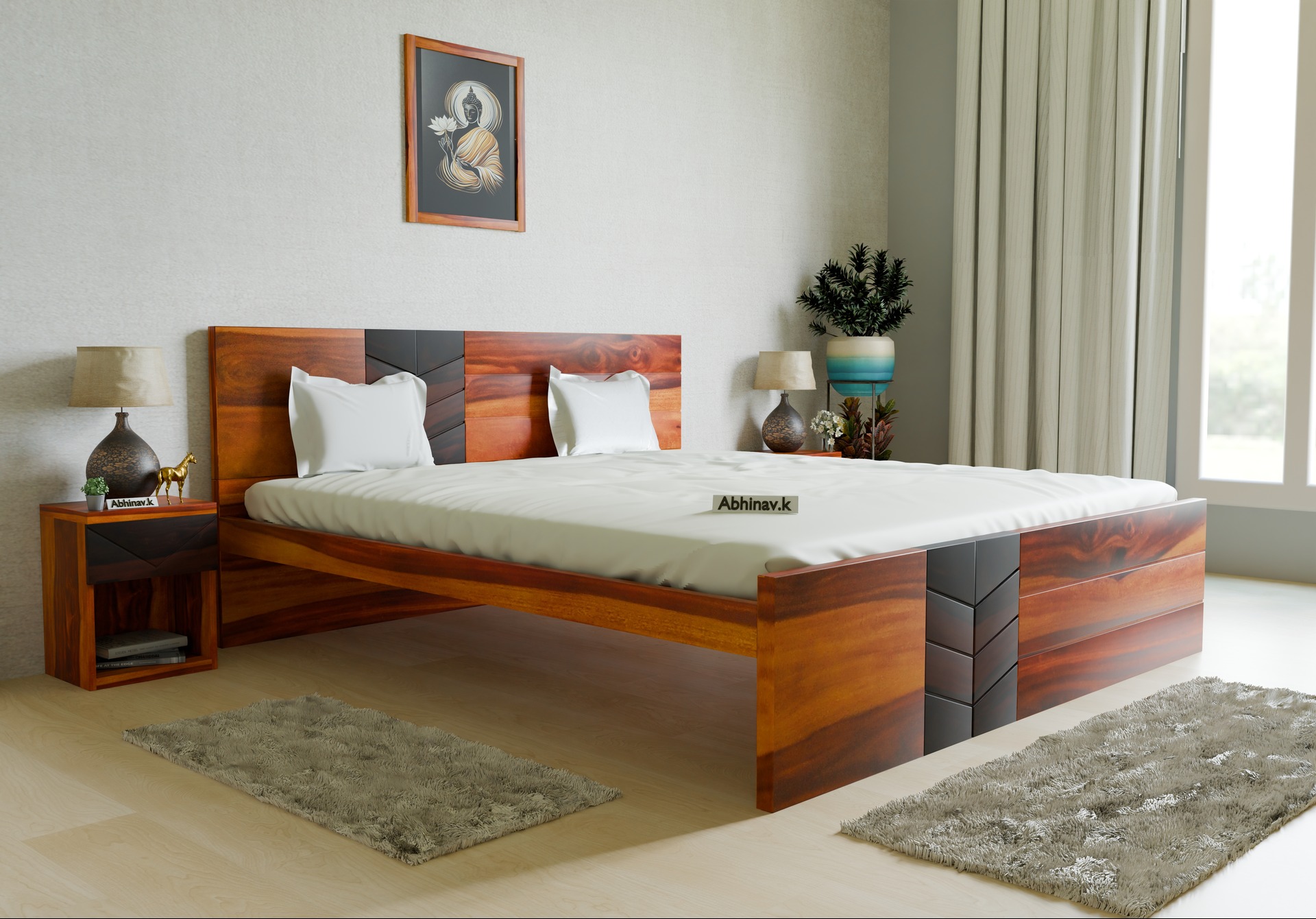 Generic Name -Arka Without Storage Bed (Queen Size, Honey Finish)