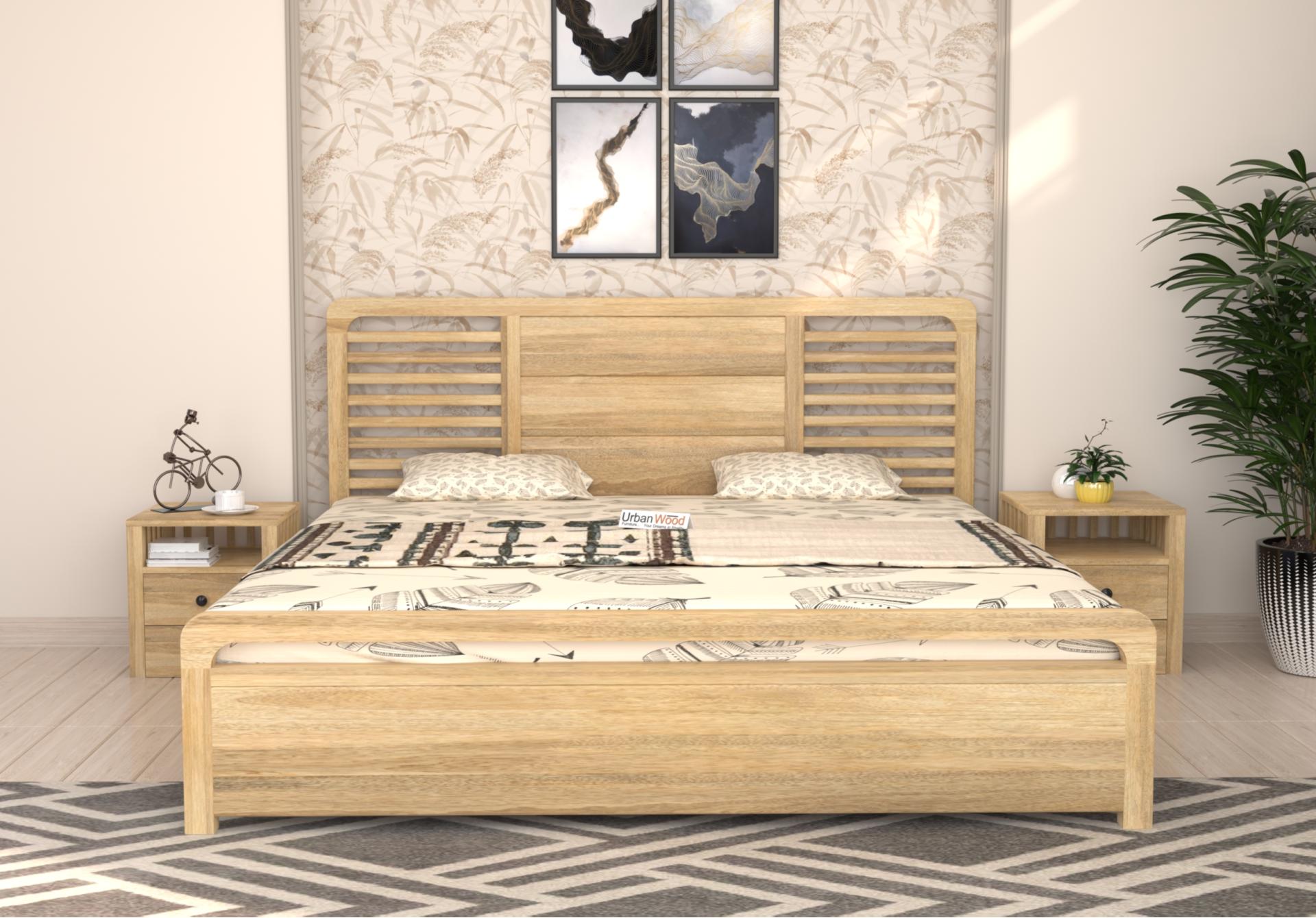 Ashoka Without Storage Bed (King Size, Natural Finish)