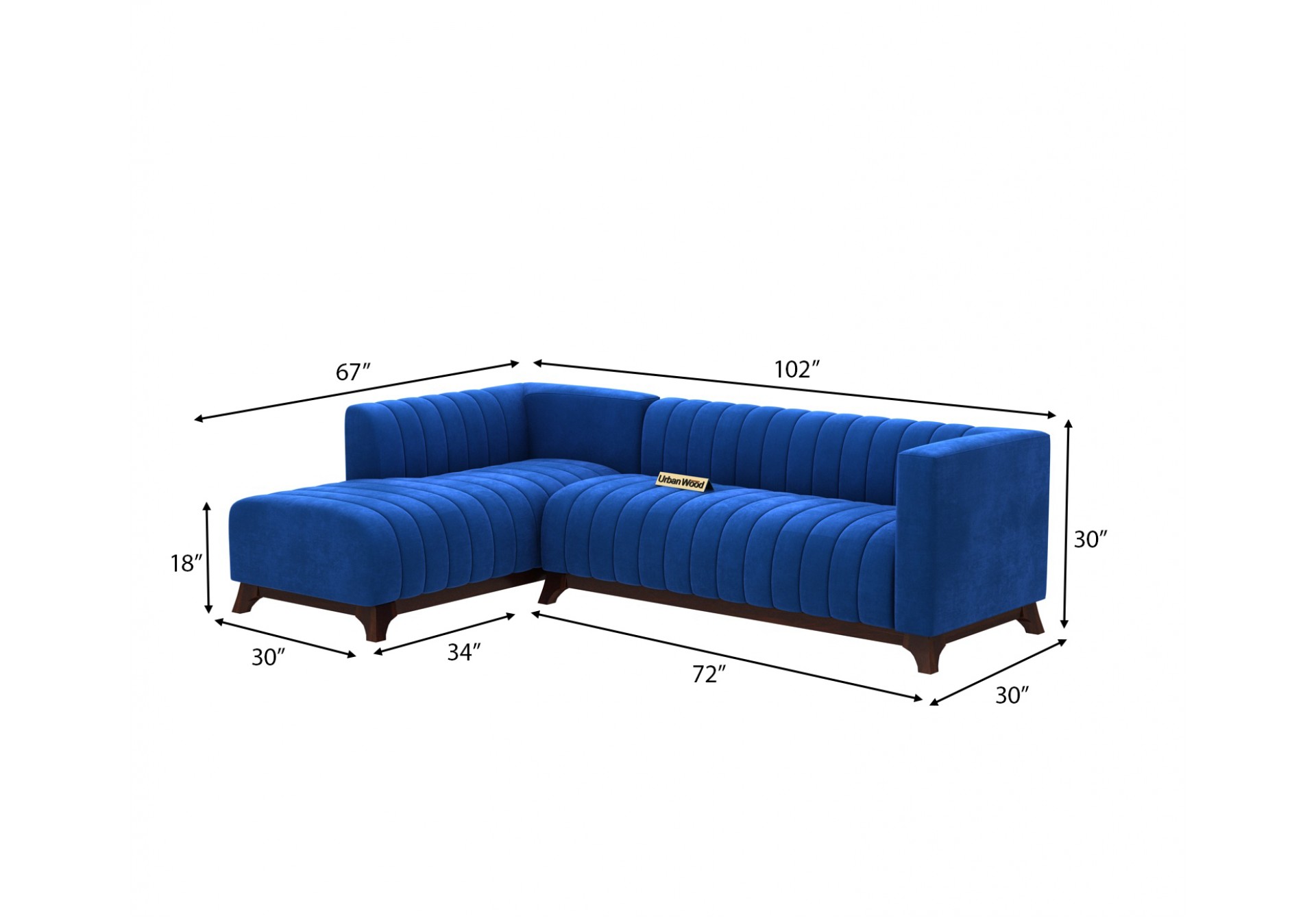 Generic Name -Barth L-Shaped Left Aligned Sofa ( Velvet, Sapphire blue )