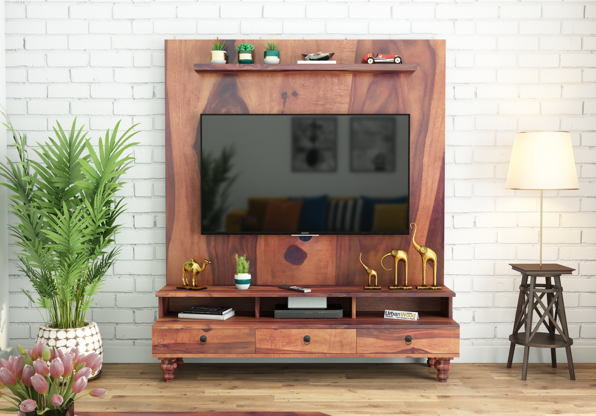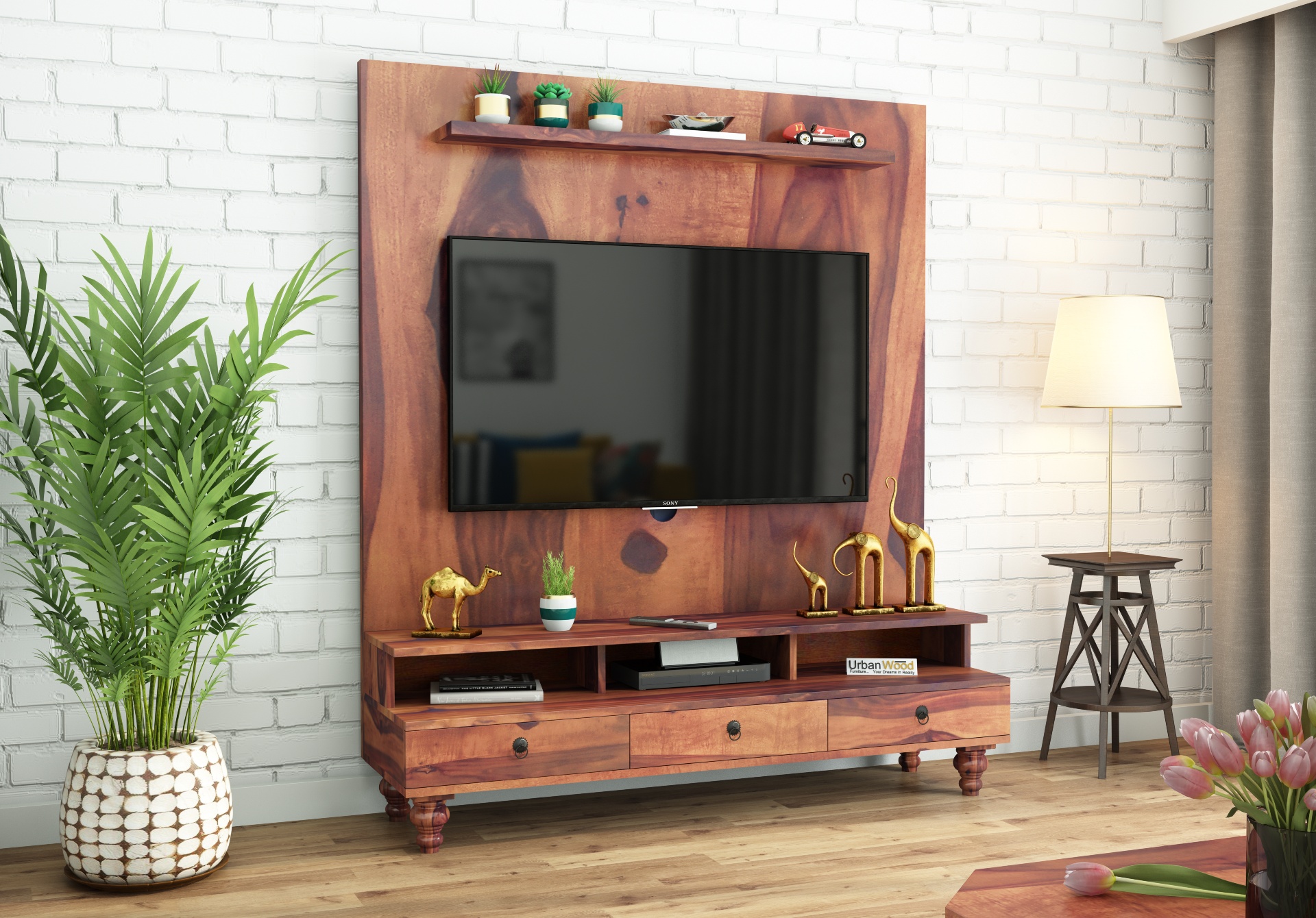 It's designed to fit in your space, style, and fit on your budget. The use of Sheesham wood in making this Entertainment Unit ensures the durability and sturdiness of the product and amazing finish options delivers fantastic looks to your home interiors.