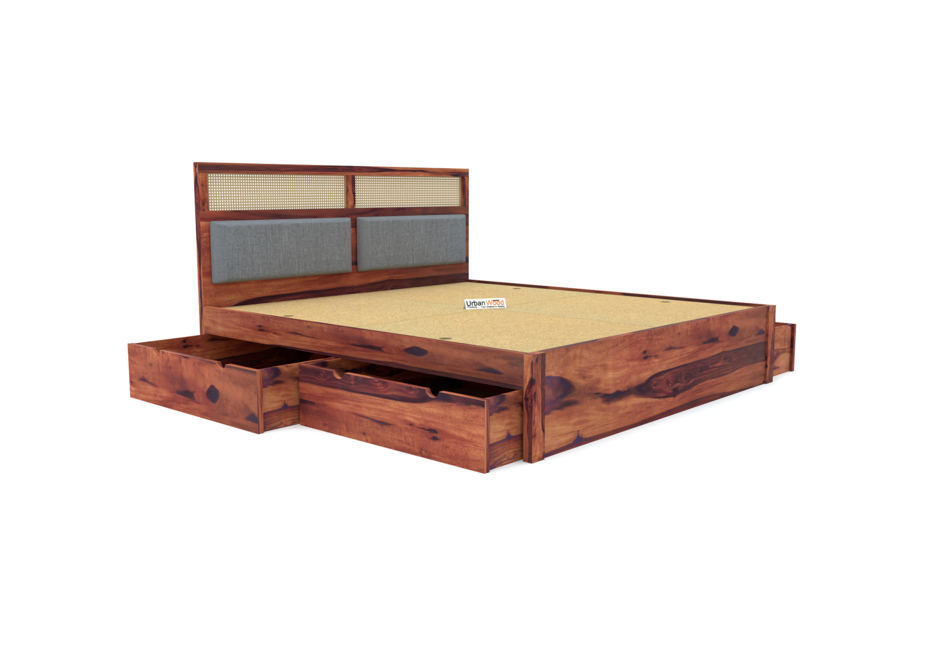 Generic Name -Calico Drawer Storage Bed (King Size, Teak Finish)