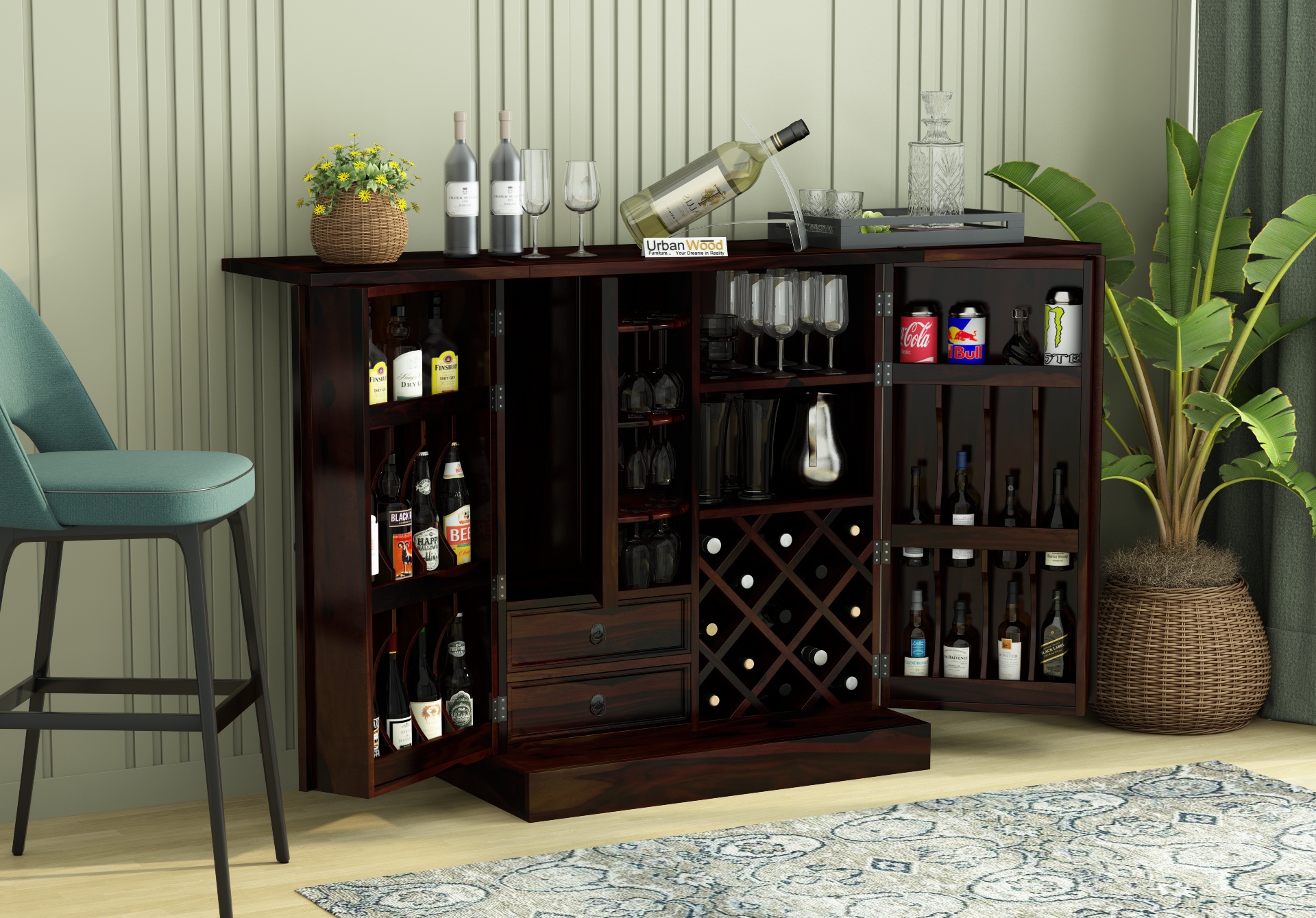 It adds a very distinctive and lovely touch to your home bar and has a respectable capacity for holding wine glasses and your pricey beverages.