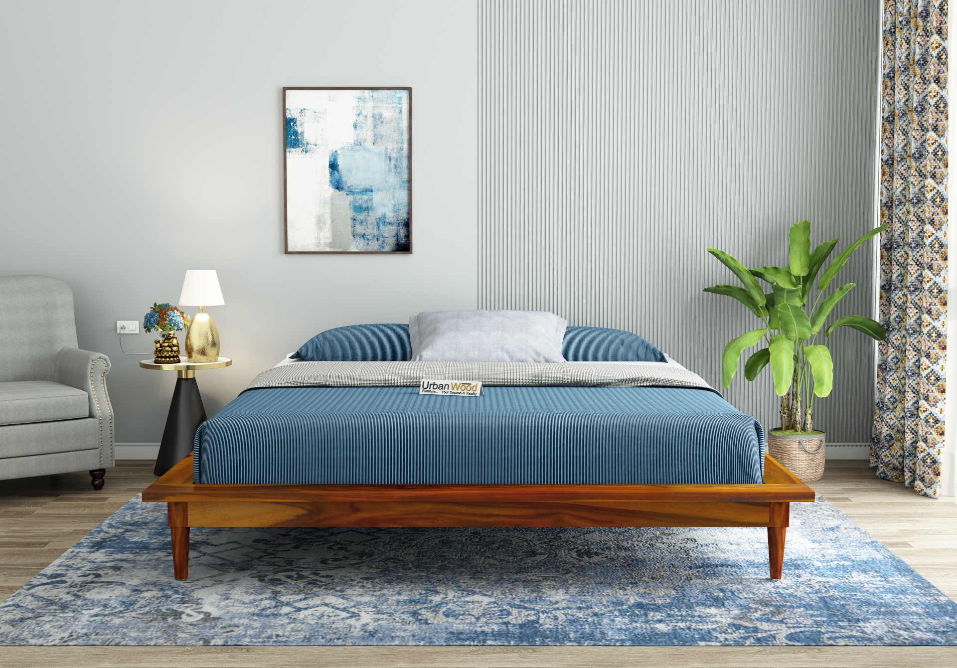 Generic Name -Couve Platform Bed ( King Size, Honey Finish )
