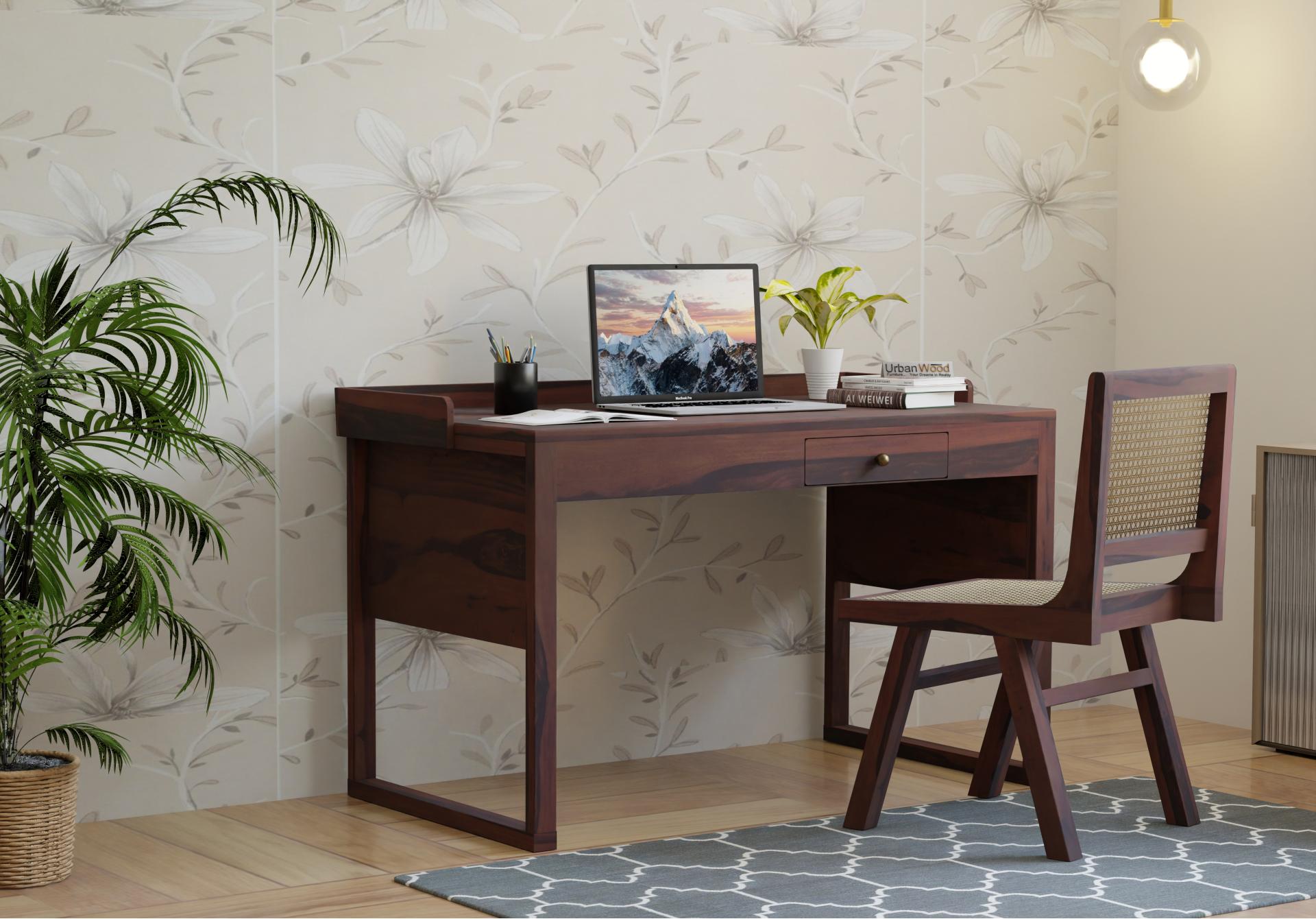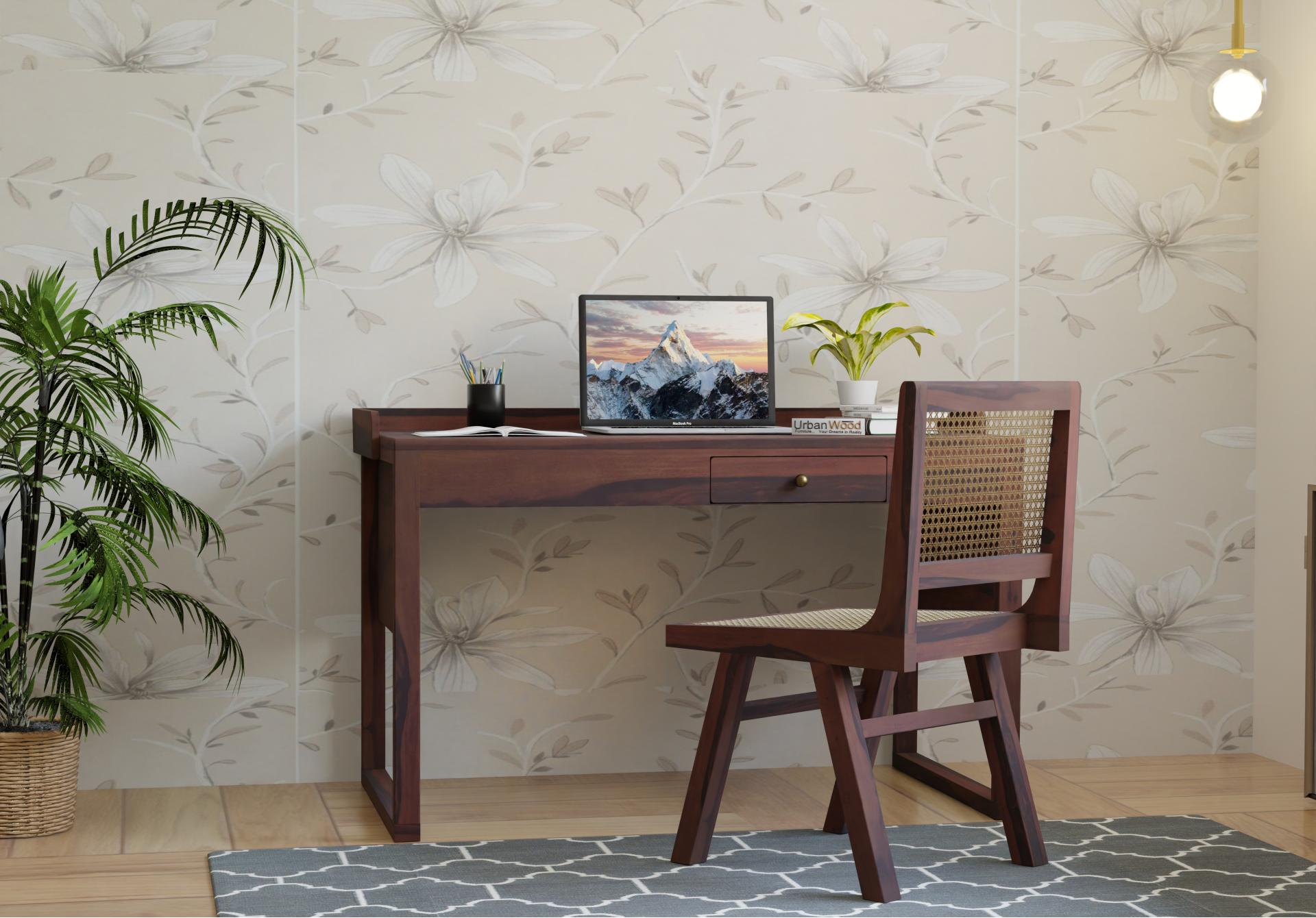 Crispin Wooden Study Table With Chair (Walnut Finish)
