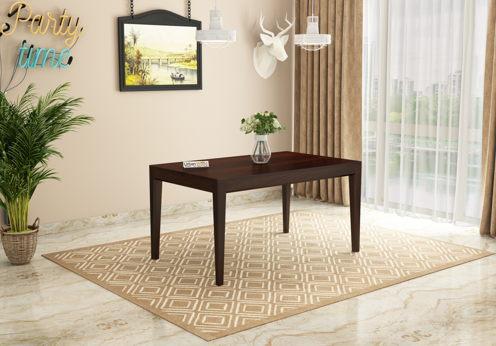 - This dining table is available with amazing finish options such as honey, teak, walnut finishes which matches your interiors.