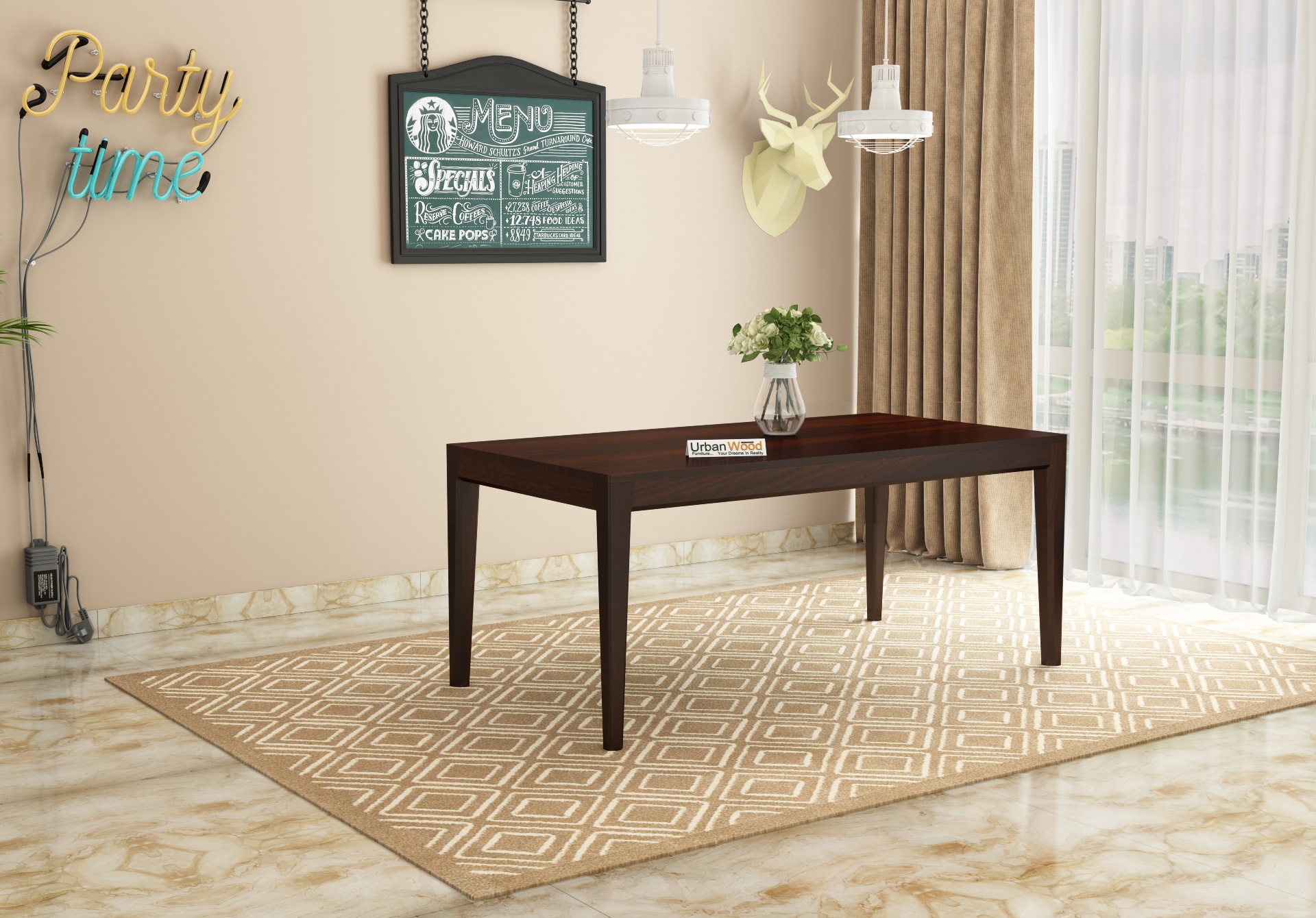 - This dining table is available with amazing finish options such as honey, teak, walnut finishes which matches your interiors.