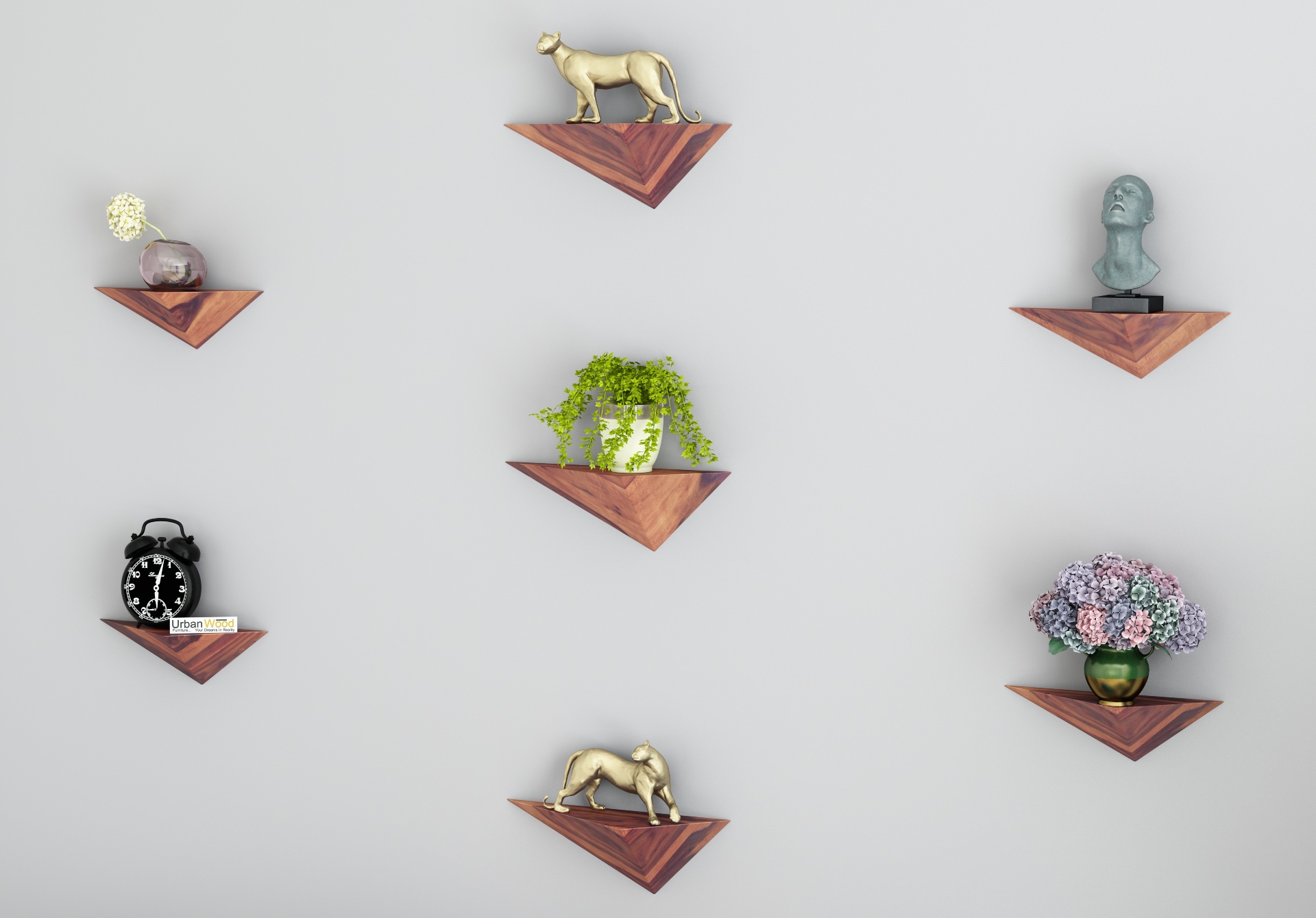 Elan wooden wall shelf with set includes seven retires that are not difficult to mount and fill in as an incredible piece of style.