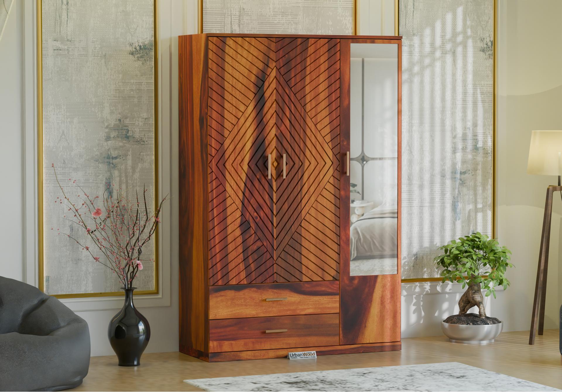 Elara 3 Door Wardrobe (Honey Finish)