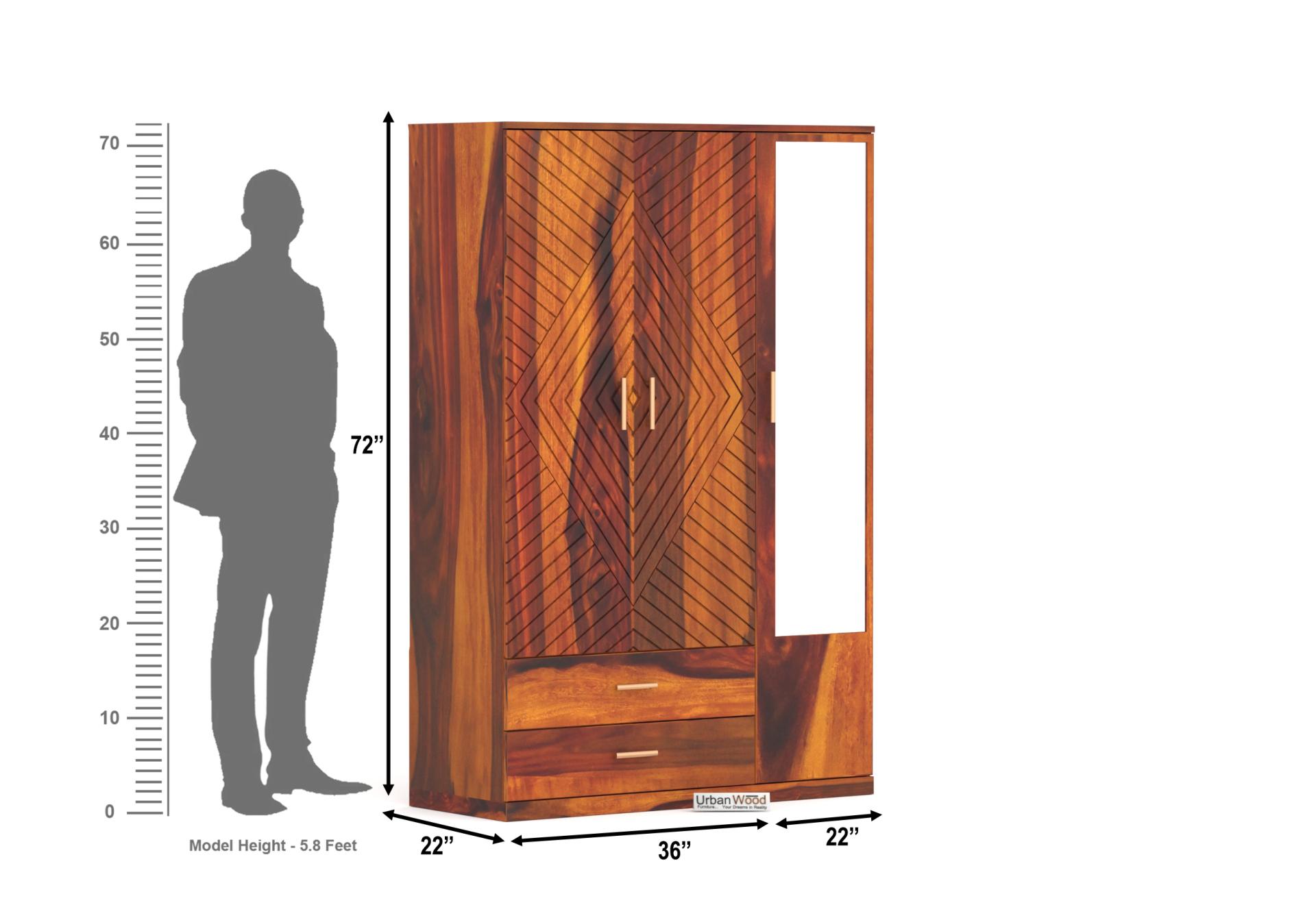 Generic Name -Elara 3 Door Wardrobe (Honey Finish)
