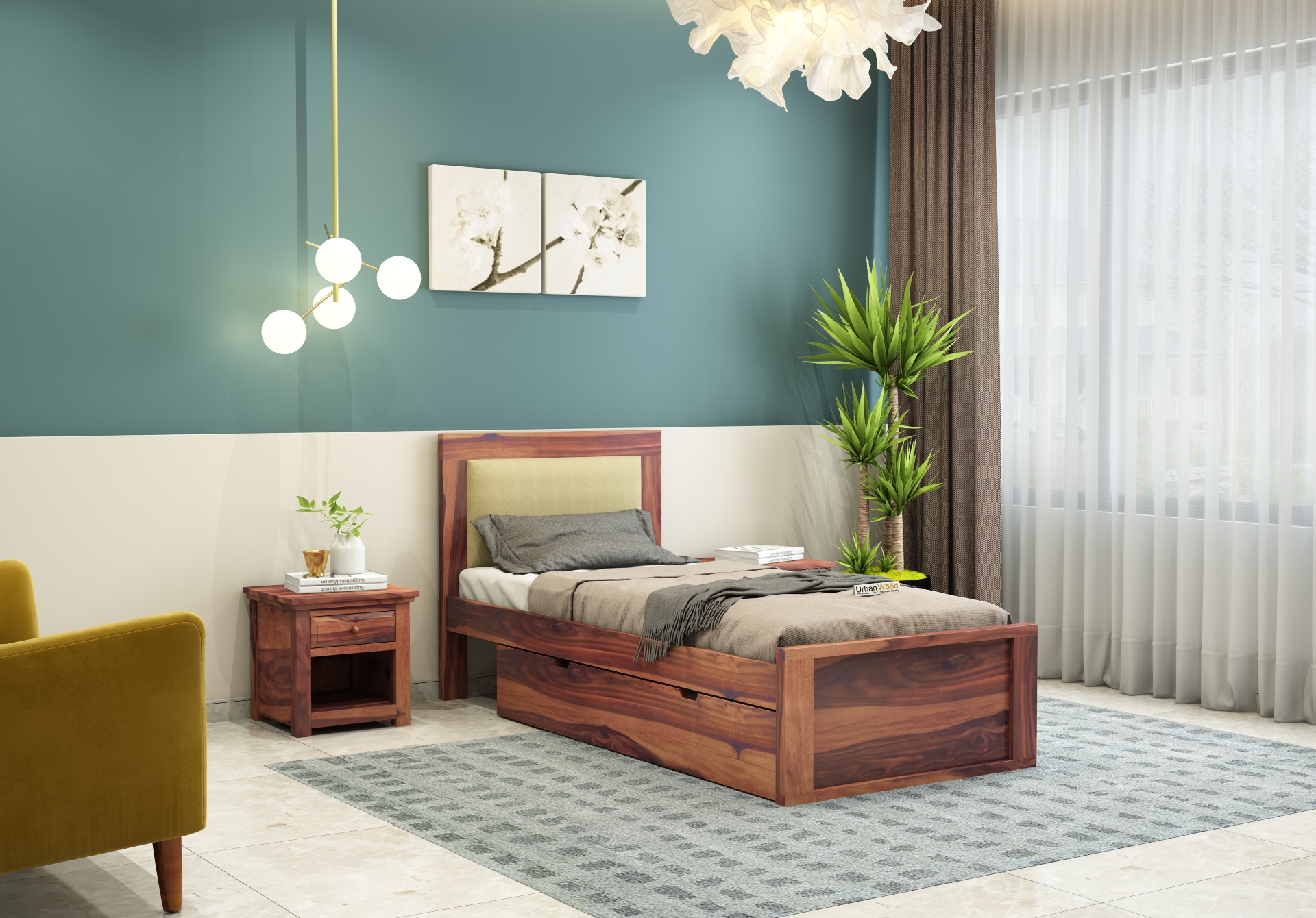 Generic Name -Harris Single Bed With Storage ( Teak Finish )