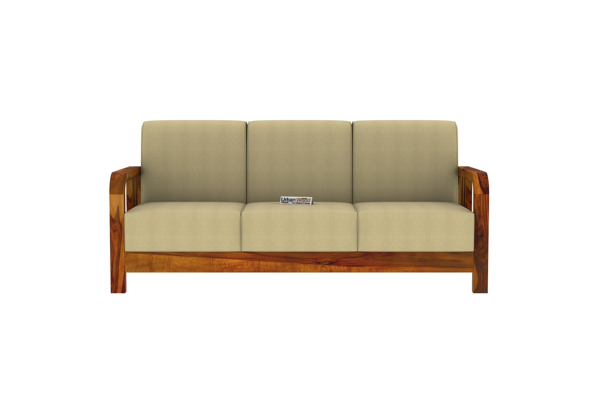 Honey finish Homebregg wooden sofa seats are perfect to bring charm to your living sq. yard. Its soft fabric on shining frames just goes apropos.