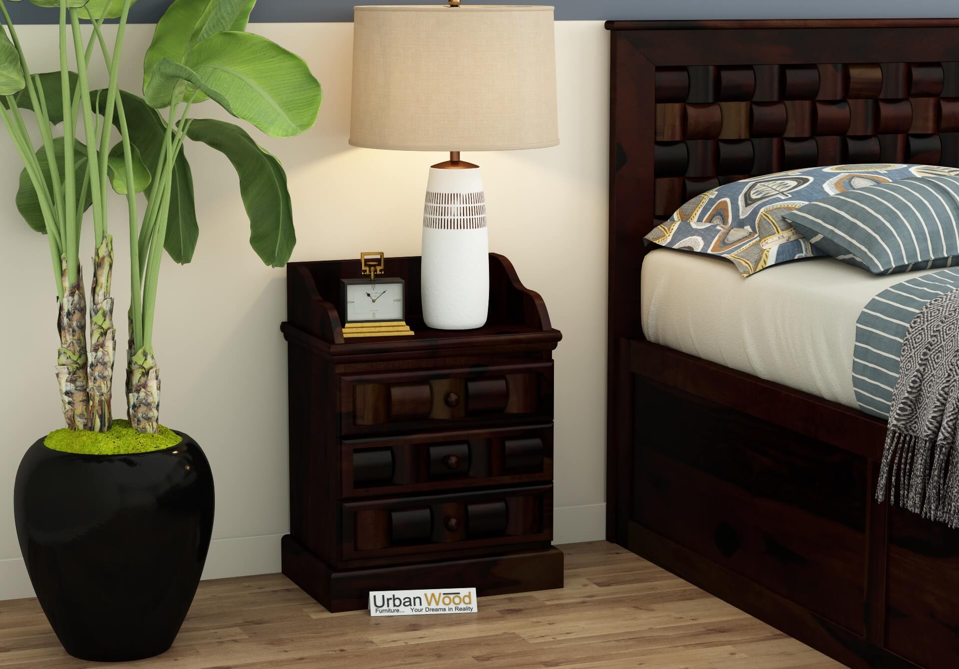 Generic Name -Hover Bed Side Table ( Walnut Finish )