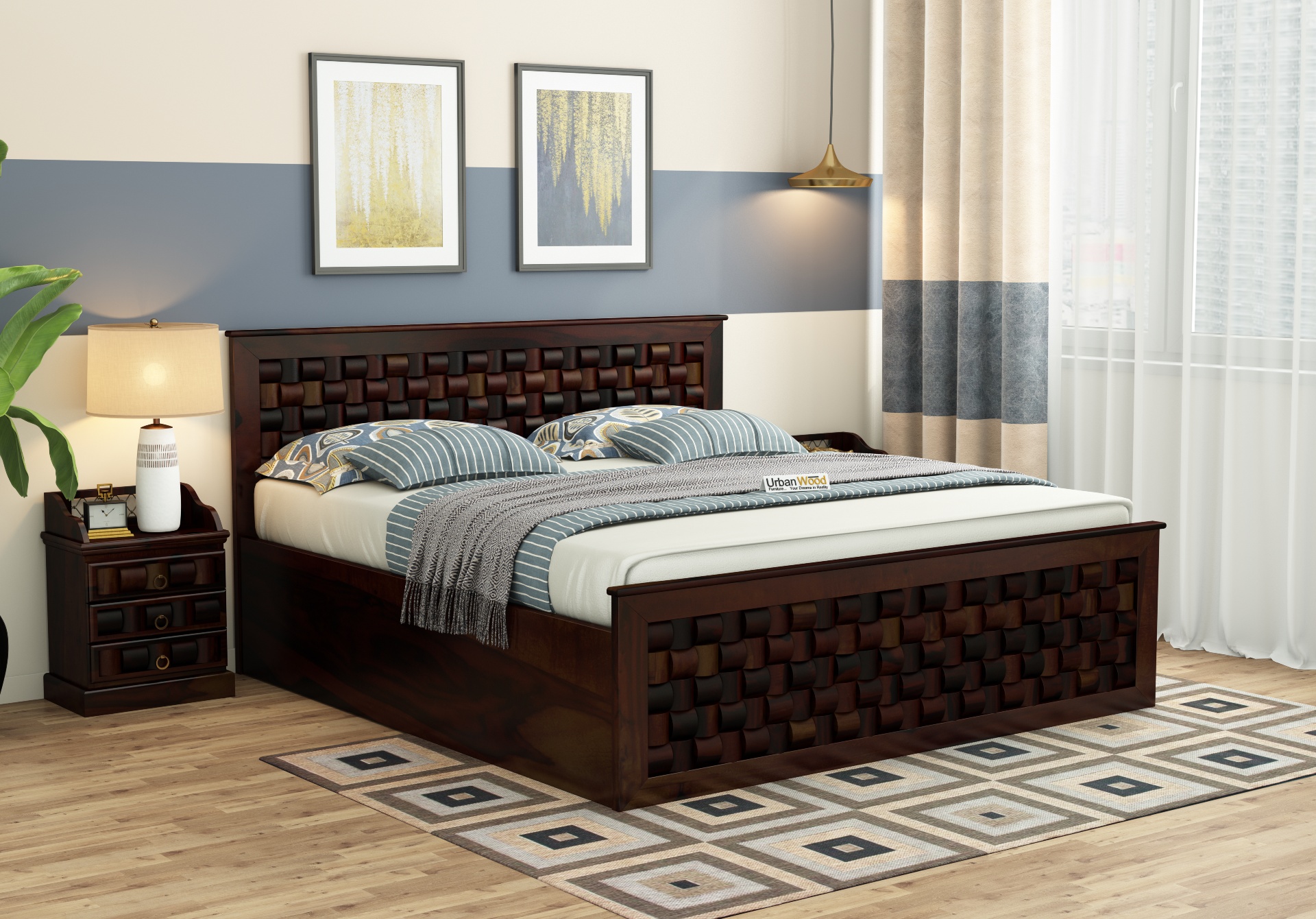 The Walnut Finish to the bed gives it a graceful look. The Dark Chocolaty look gives it a tempting touch, the perfect Bed blending with your interior