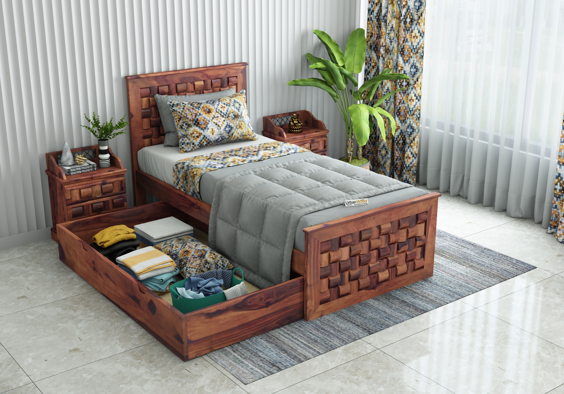 Generic Name -Hover Single Bed with Drawer Storage ( Teak Finish )