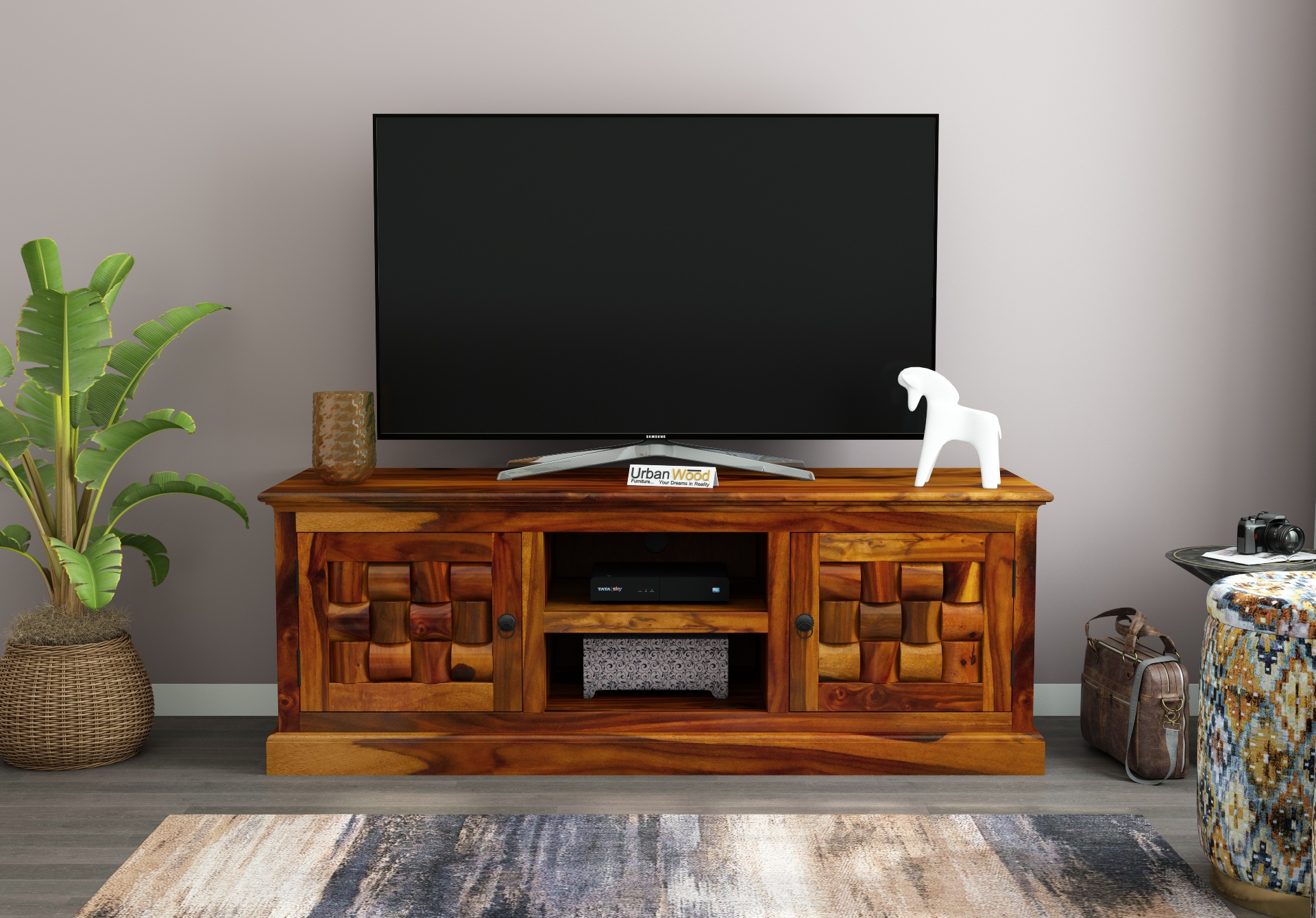 This tv unit is finely made up of Sheesham wood with a combination of black and brown. This setup gives it a pneumatic look that creates a different aura in your space.