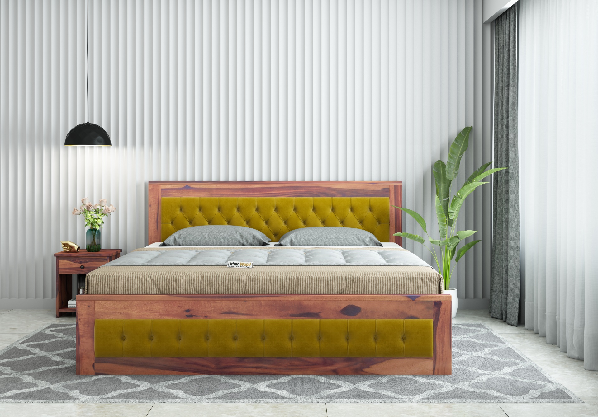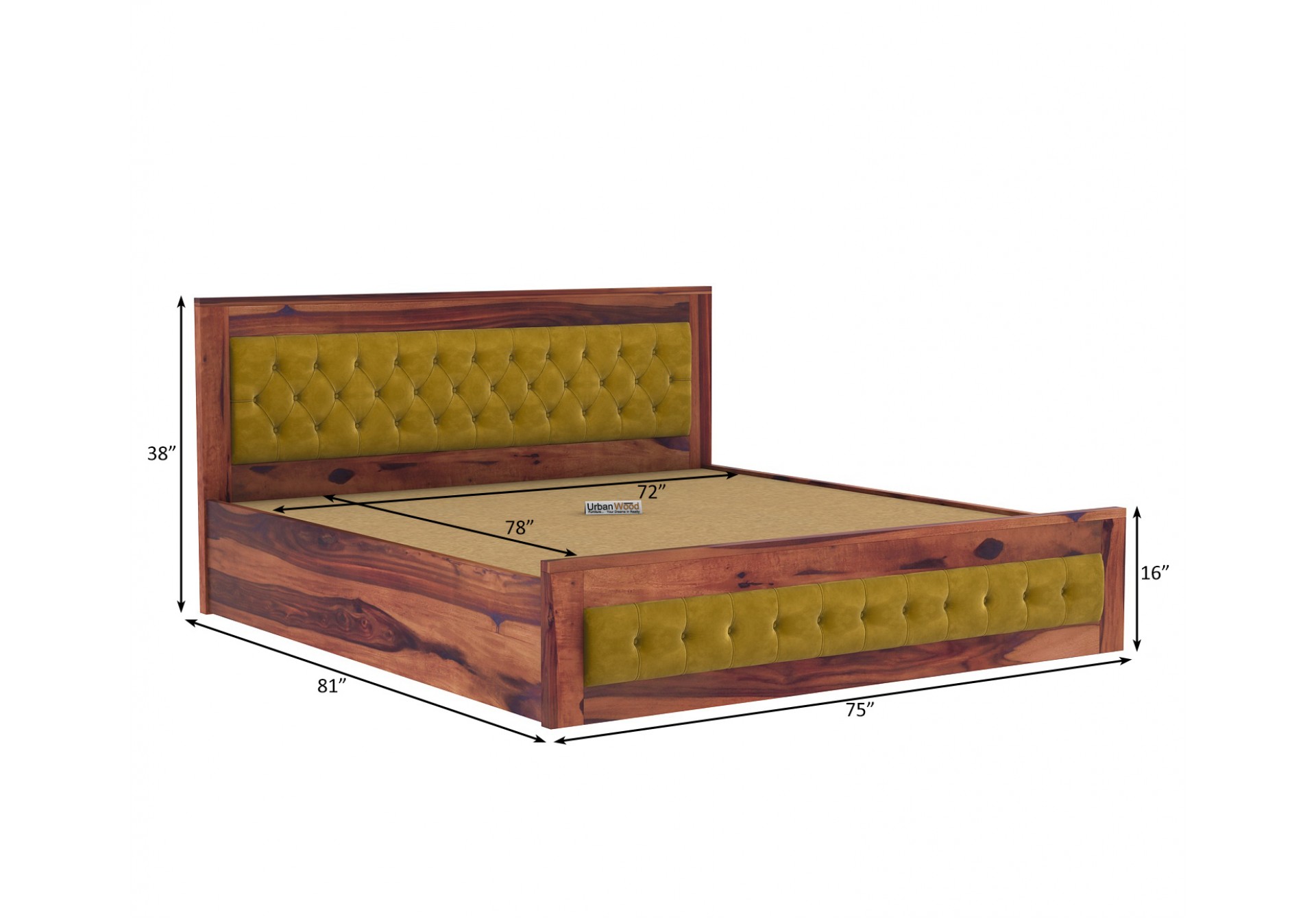 The Sheesham wood Jolly hydraulic storage expands the space available for lodging. You may browse more Honey, Teak, and Walnut finishes as well.