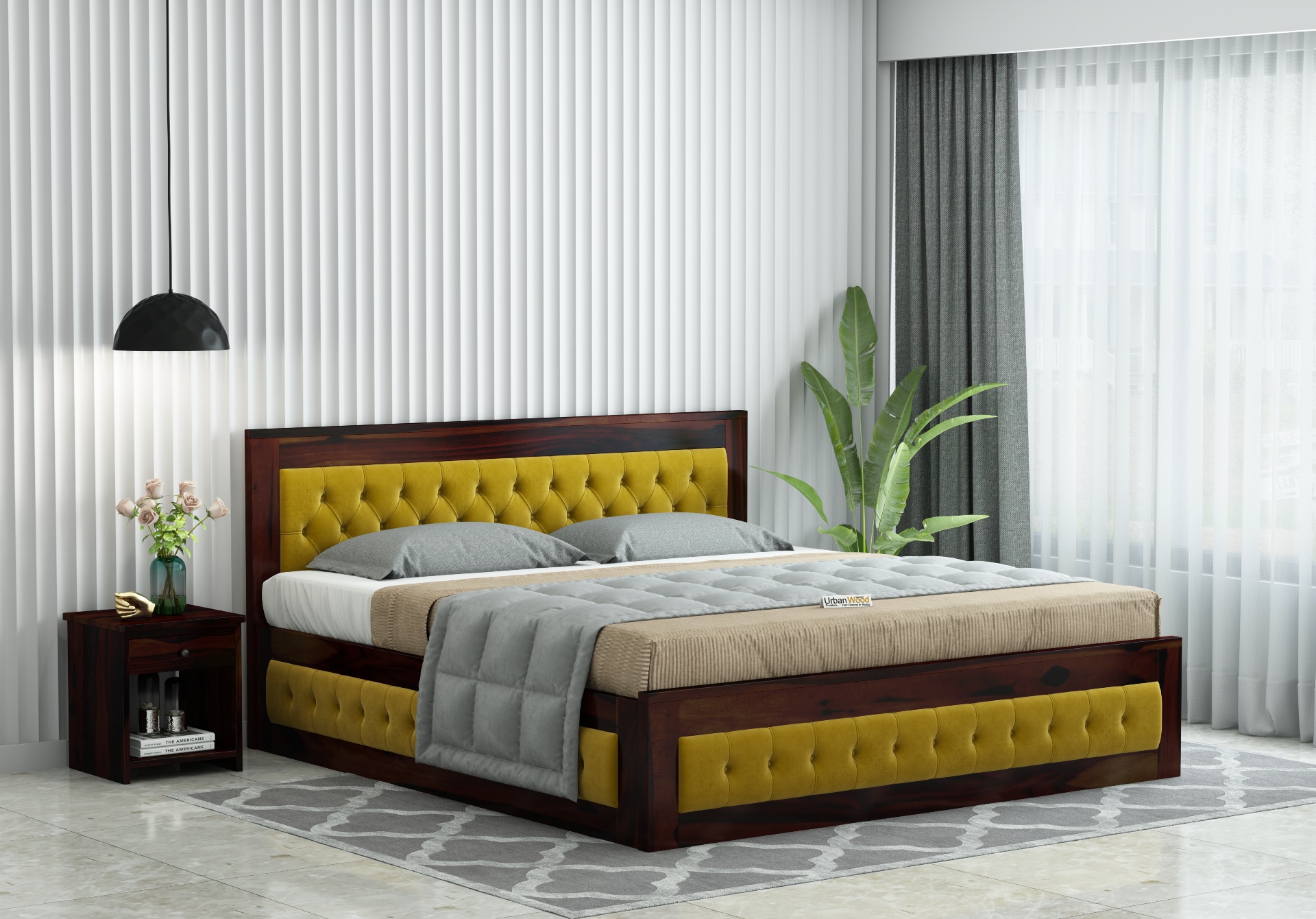 The creation of this double bed also features a box storage place to help you declutter your private space. It also utilizes the best-grade anti-aging Sheesham wood.