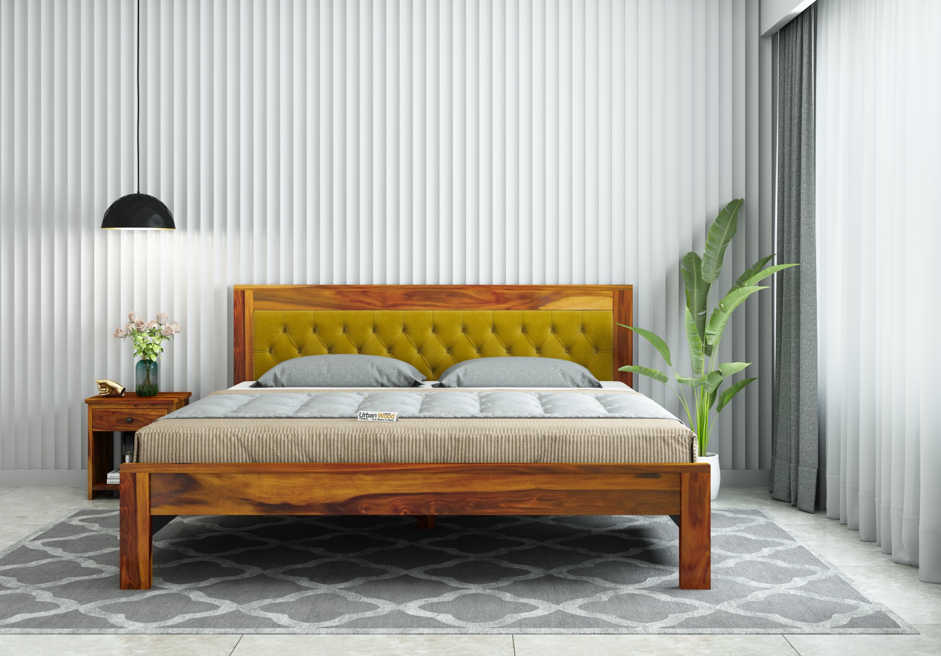 This double bed is made with the utmost quality anti-aging Sheesham wood that ensures longer durability.