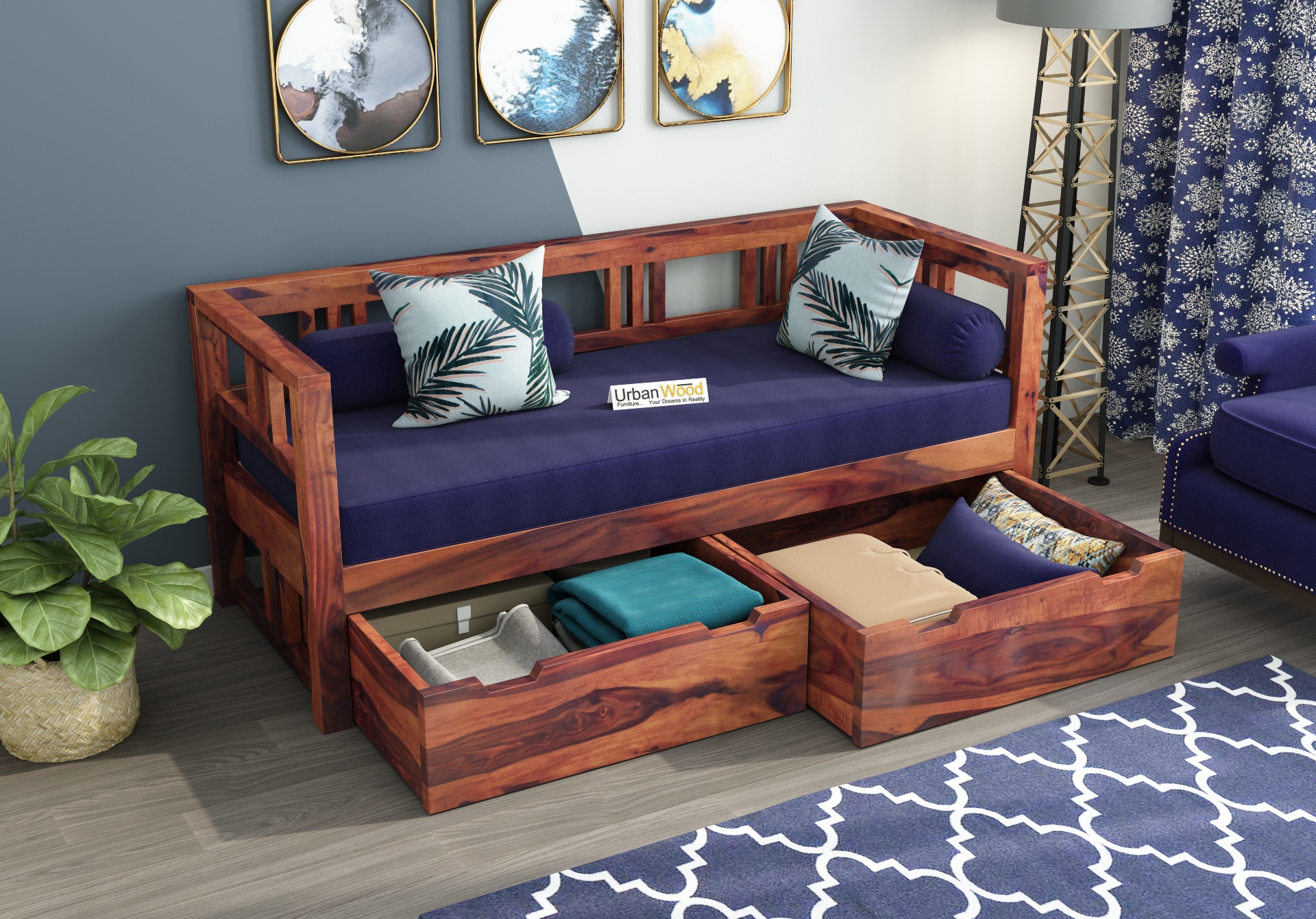 Our lightweight solid wood diwan bed suits your living room needs with and is a breeze to sleep on.