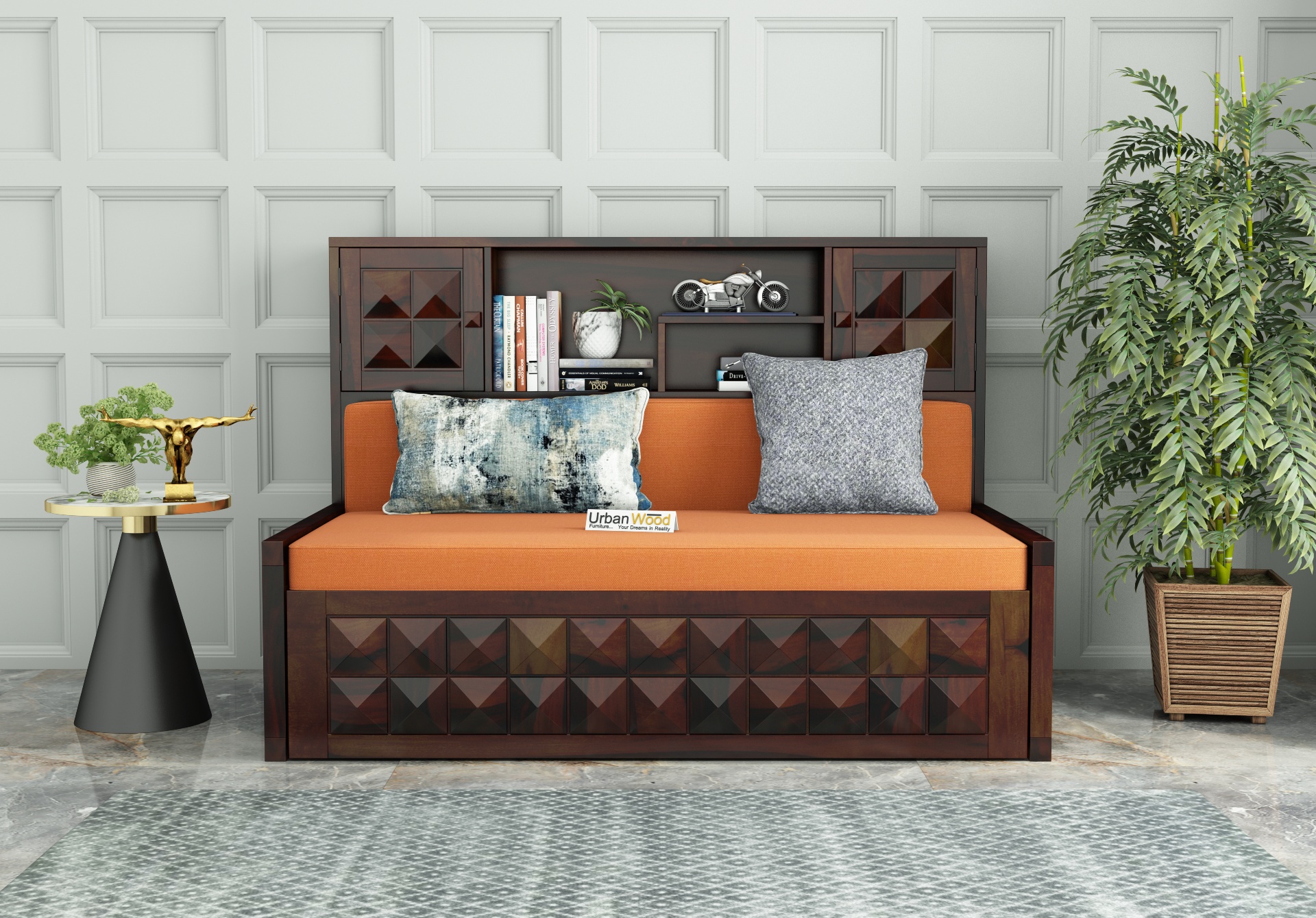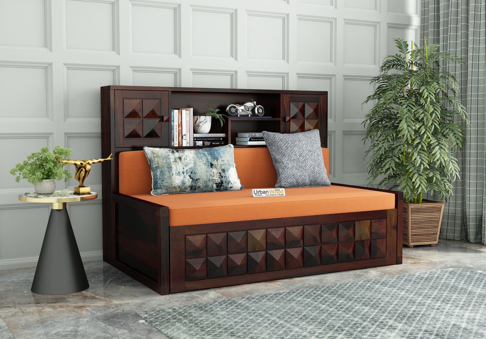 The amazing finish options built with Sheesham wood makes this sofa cum bed with storage an amazing furniture option for your living room needs.