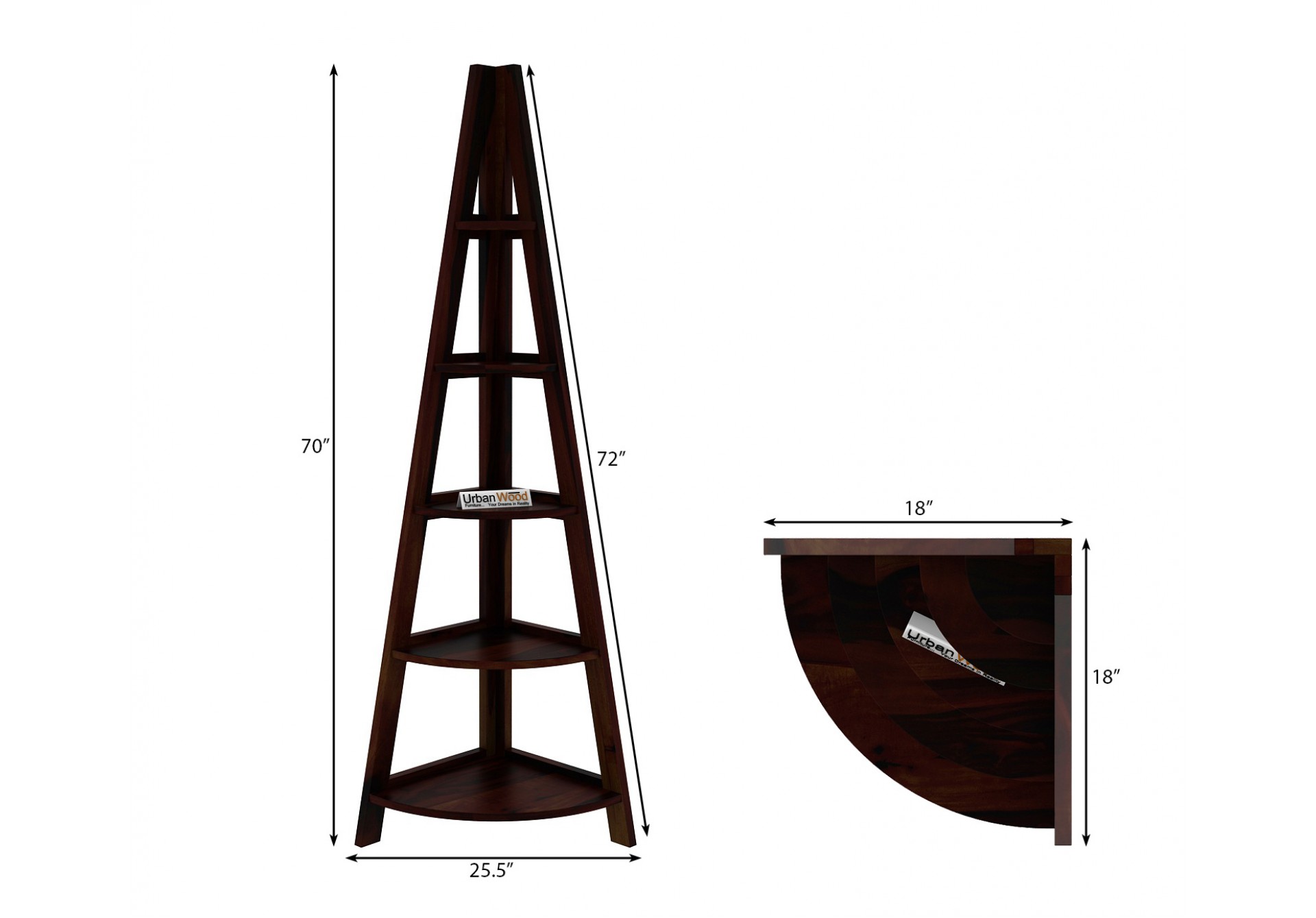 Made using solid Sheesham wood, the Naro Corner bookshelf is a Unique idea, designed to have stacked shelves, each expanding in size, giving you an alternate size of the rack on each level.