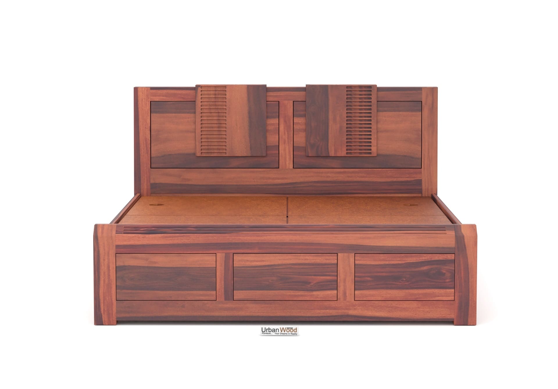 Norik Wooden Box Storage Bed (Queen Size, Teak Finish)