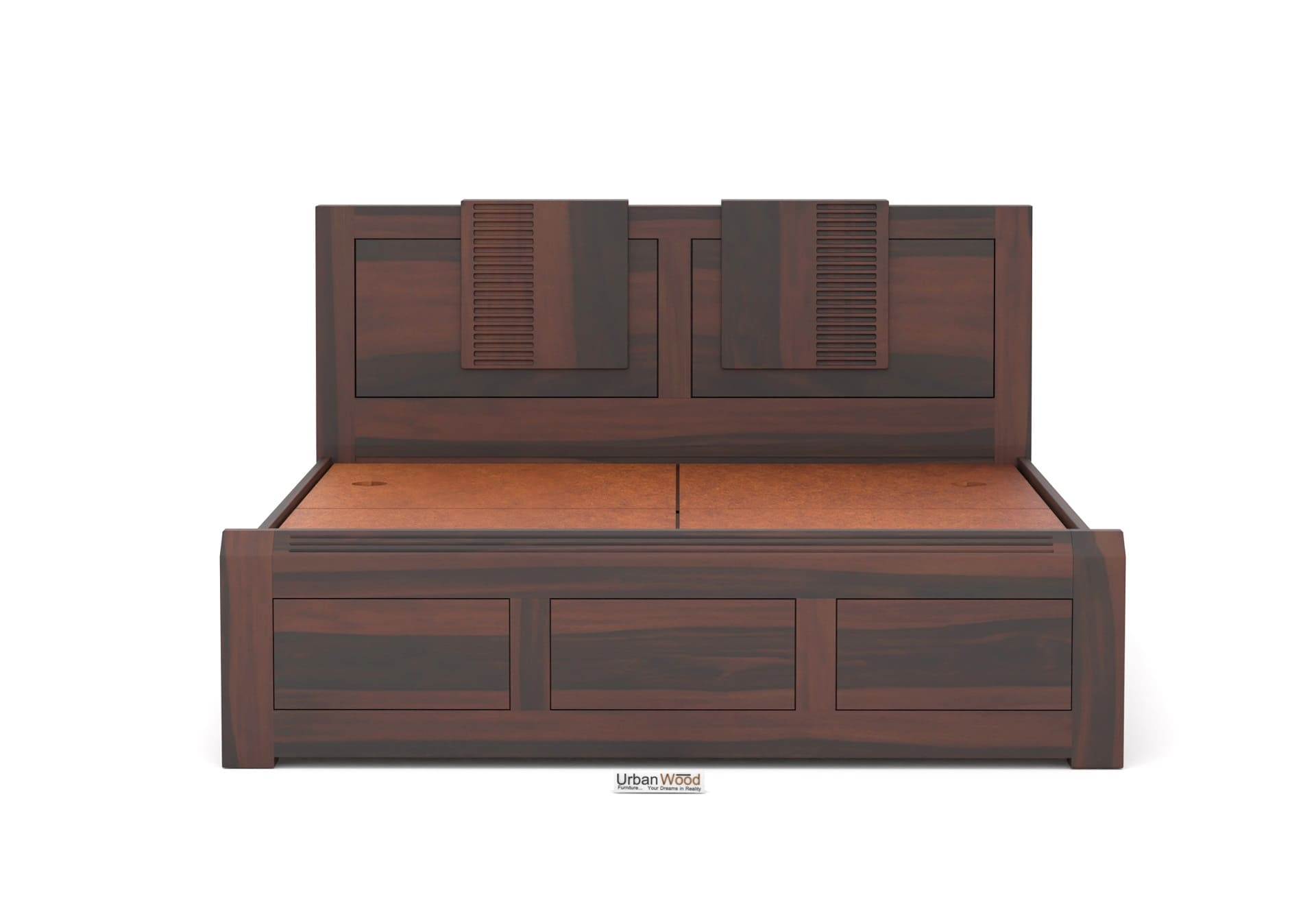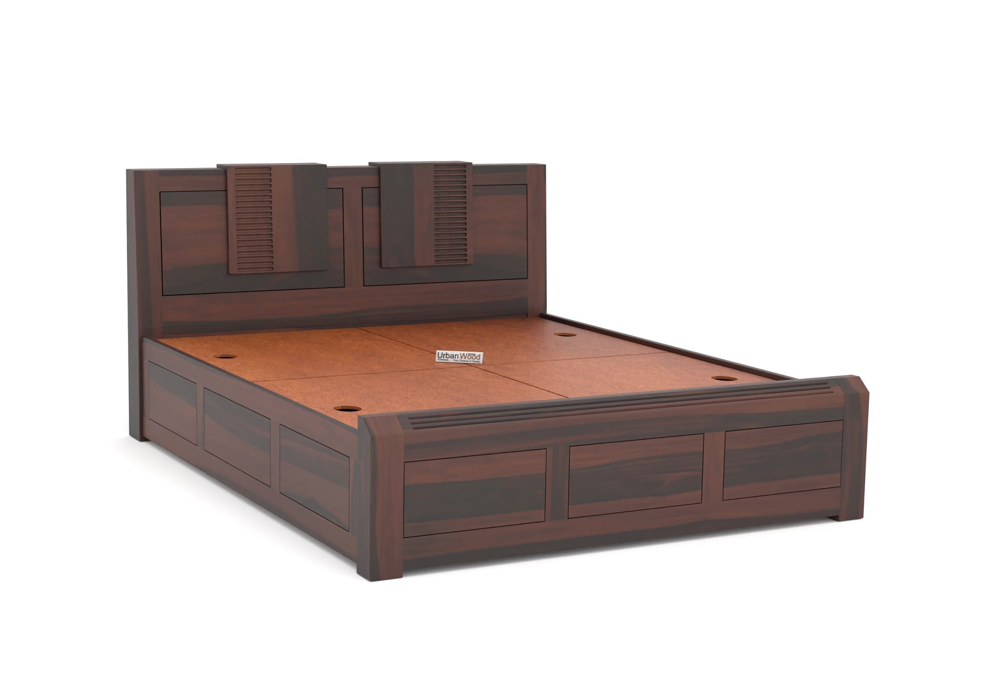 Norik Wooden Box Storage Bed (Queen Size, Walnut Finish)