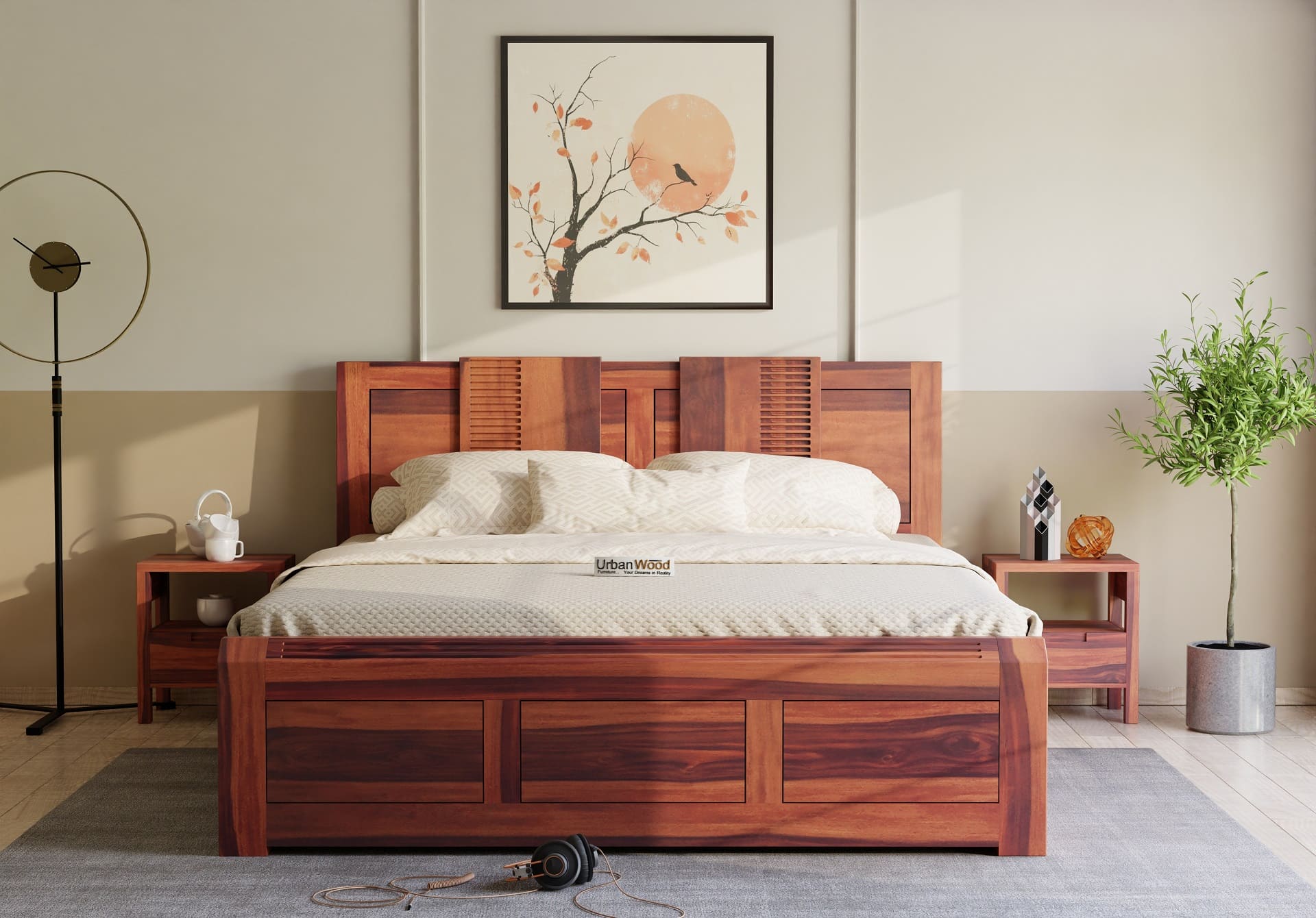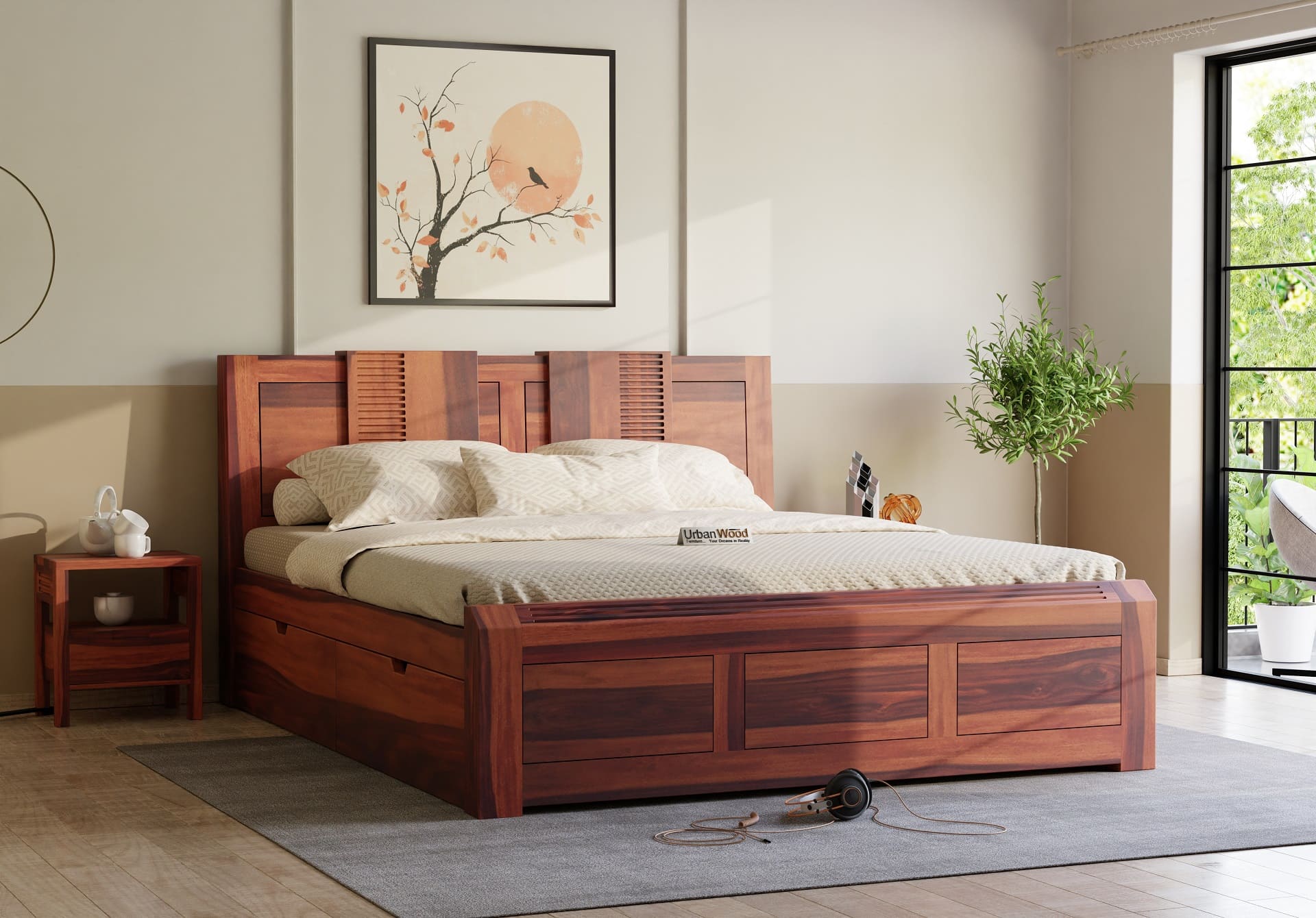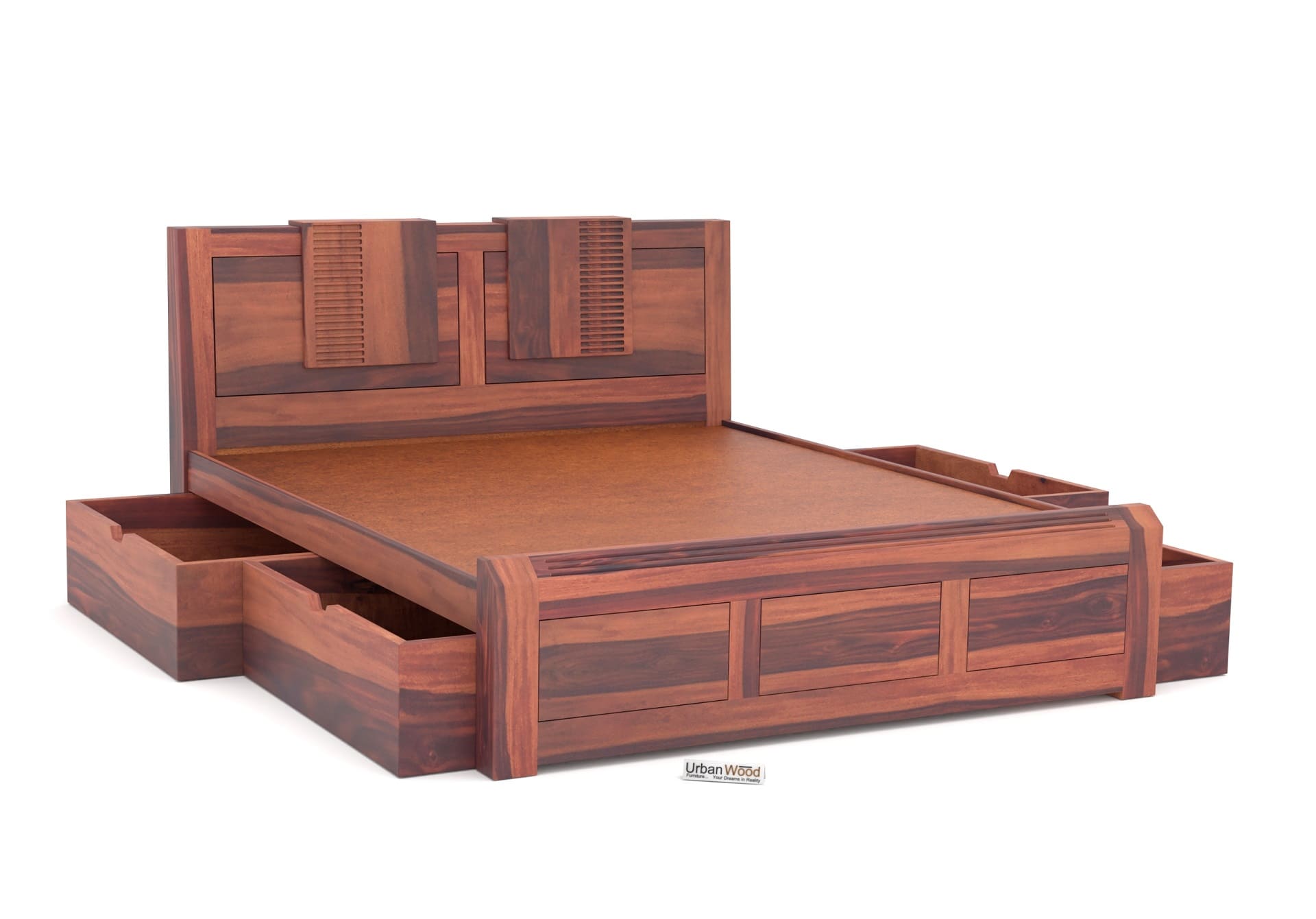 Norik Wooden Drawer Storage Bed (King Size, Teak Finish)