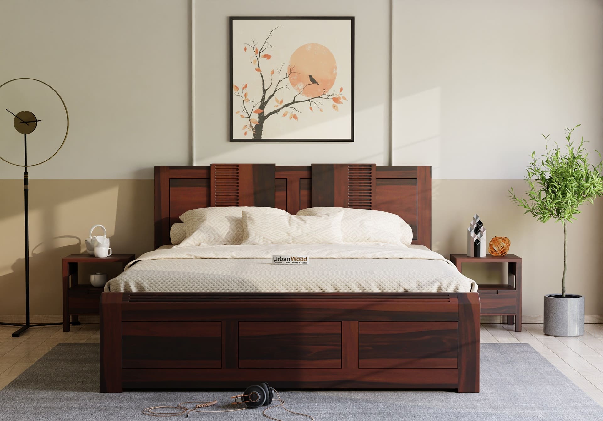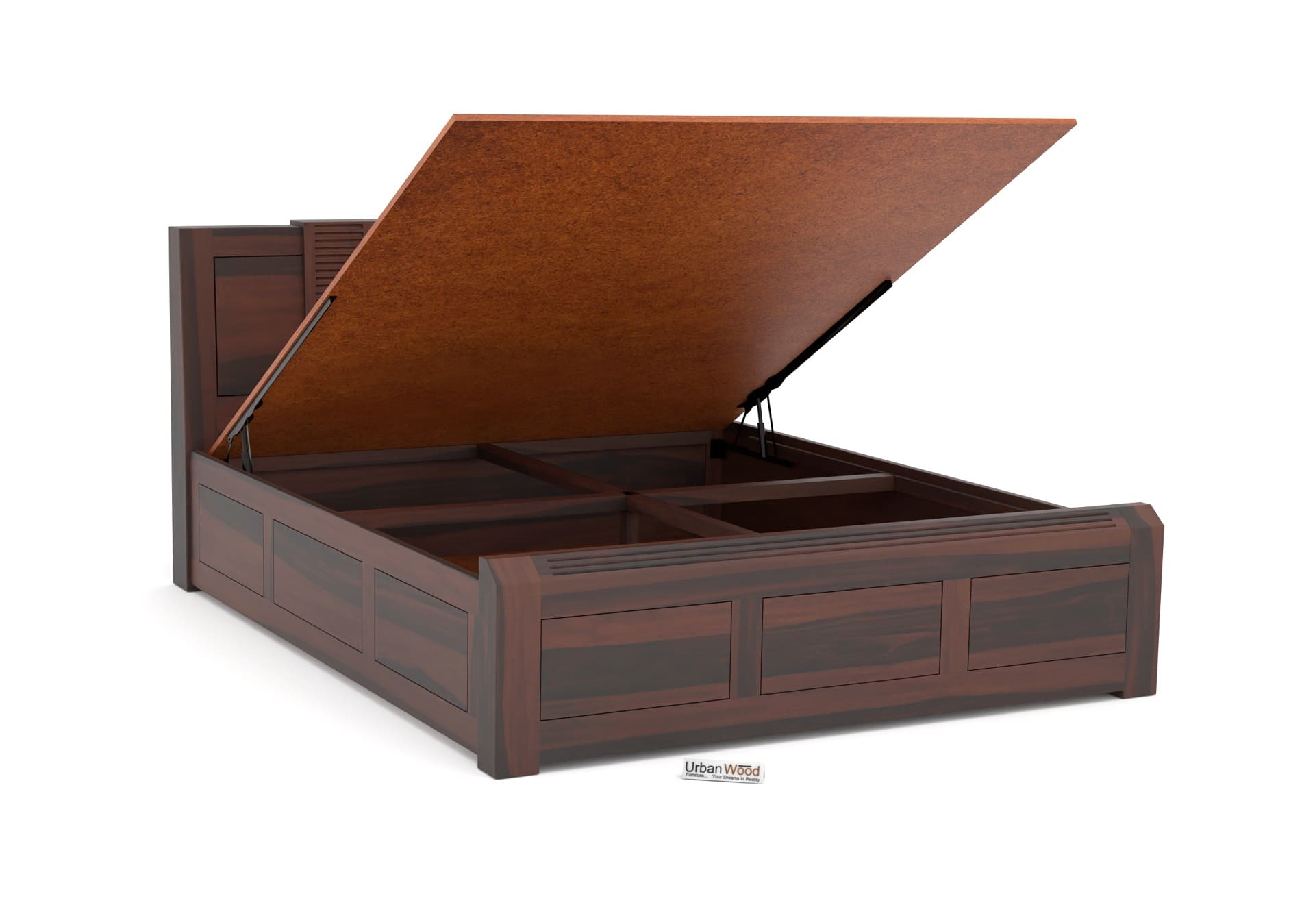 Norik Wooden Hydraulic Storage Bed (King Size, Walnut Finish)