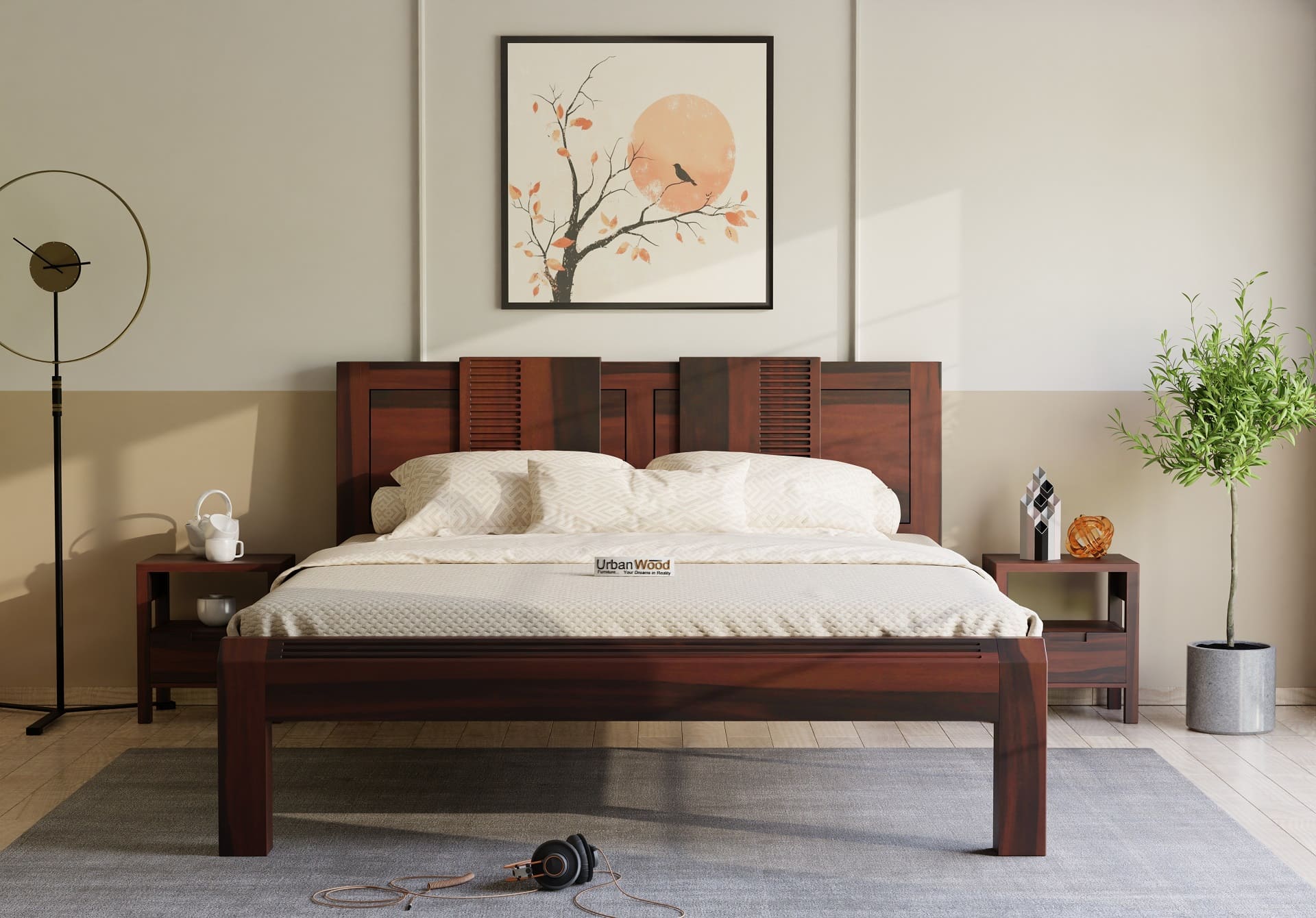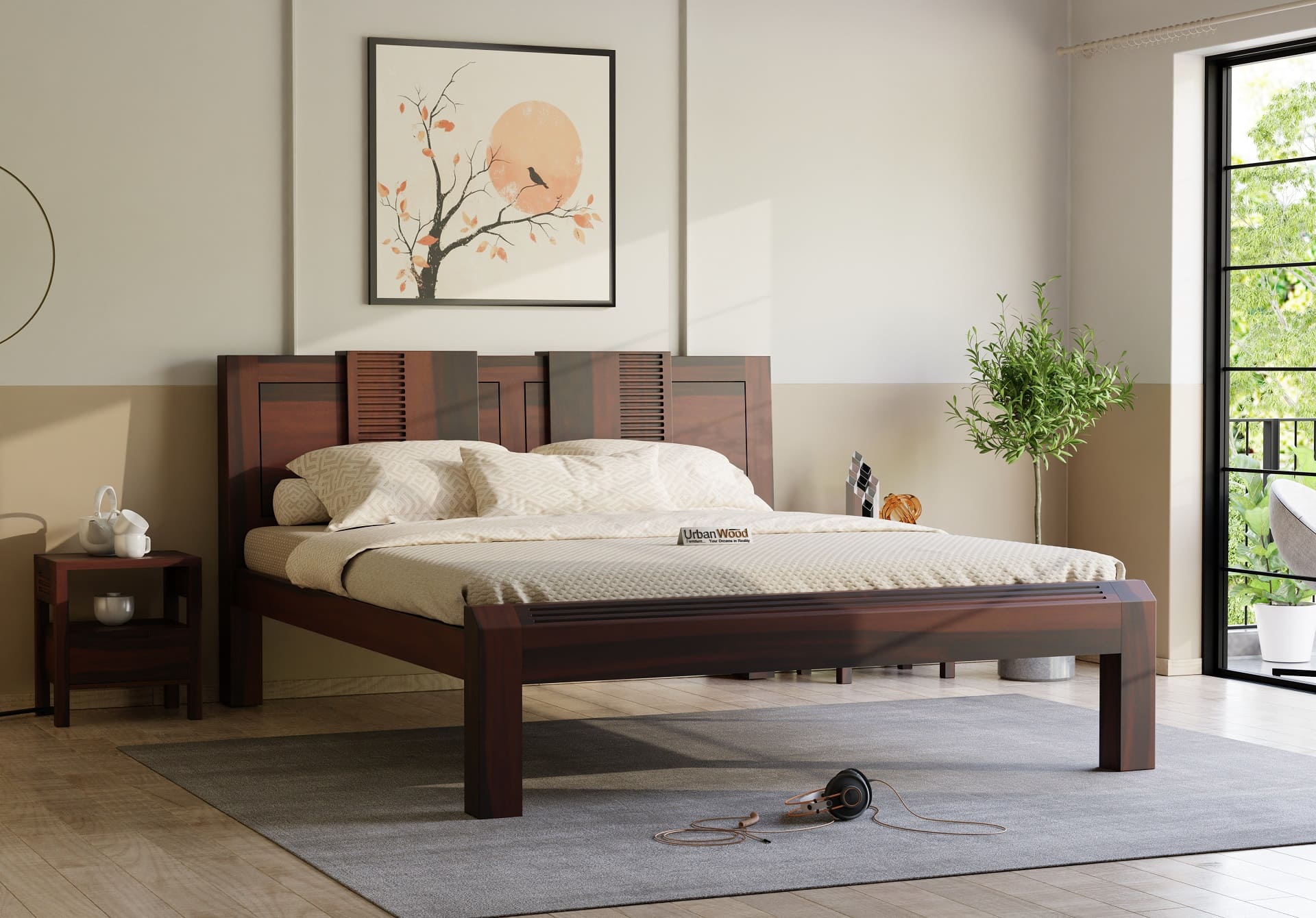 Norik Wooden Without Storage Bed (King Size, Walnut Finish)