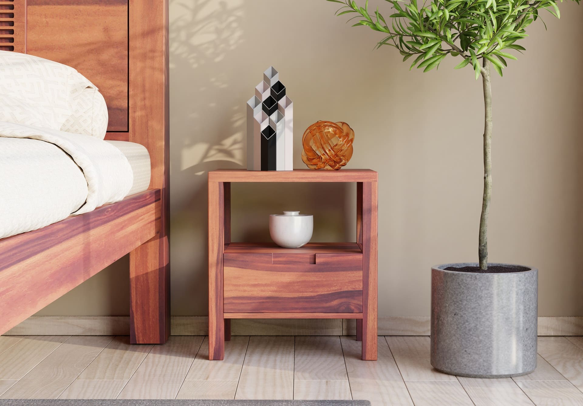 Ragnar Bedside Table (Teak Finish)