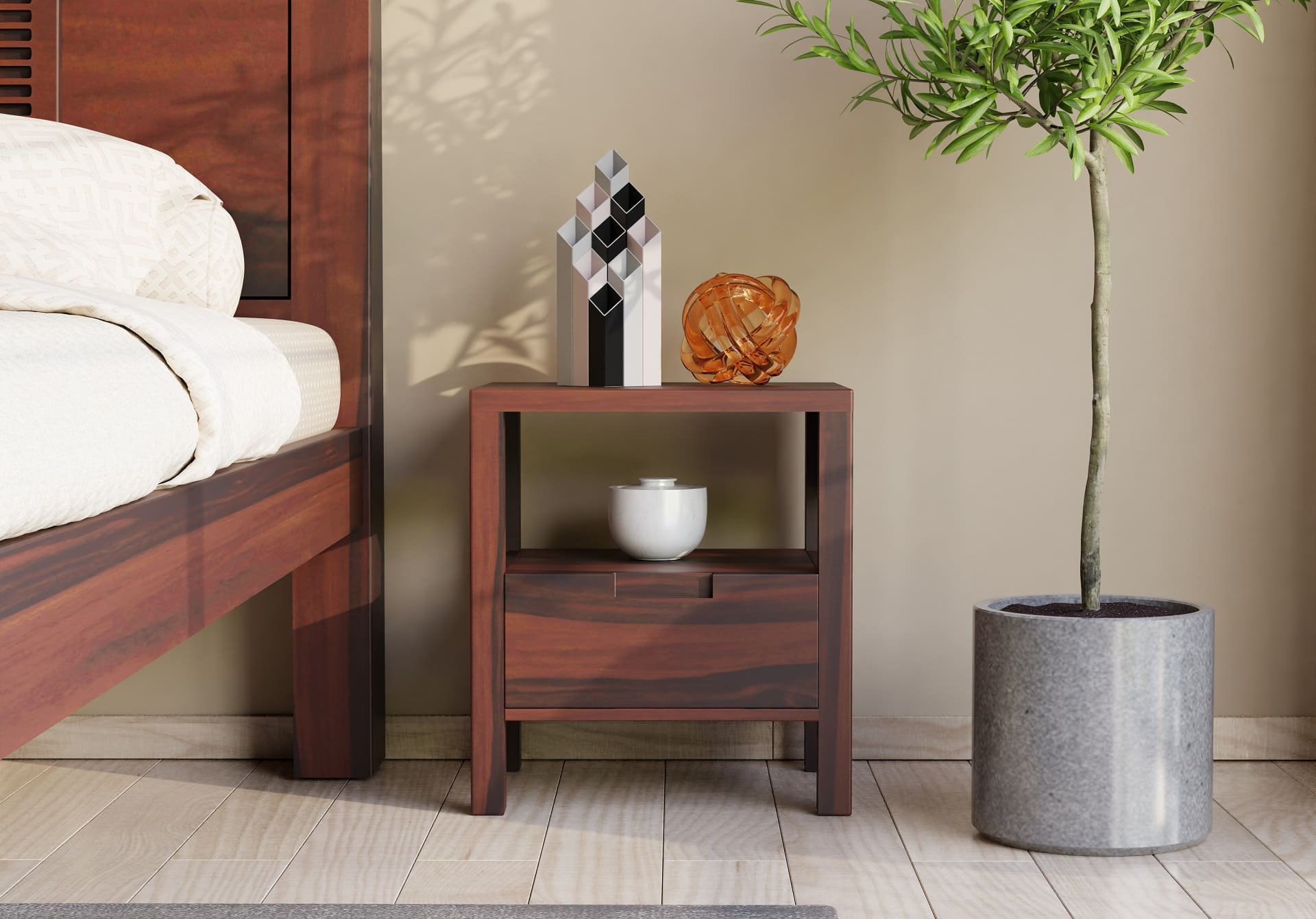 Generic Name -Ragnar Bedside Table (Walnut Finish)