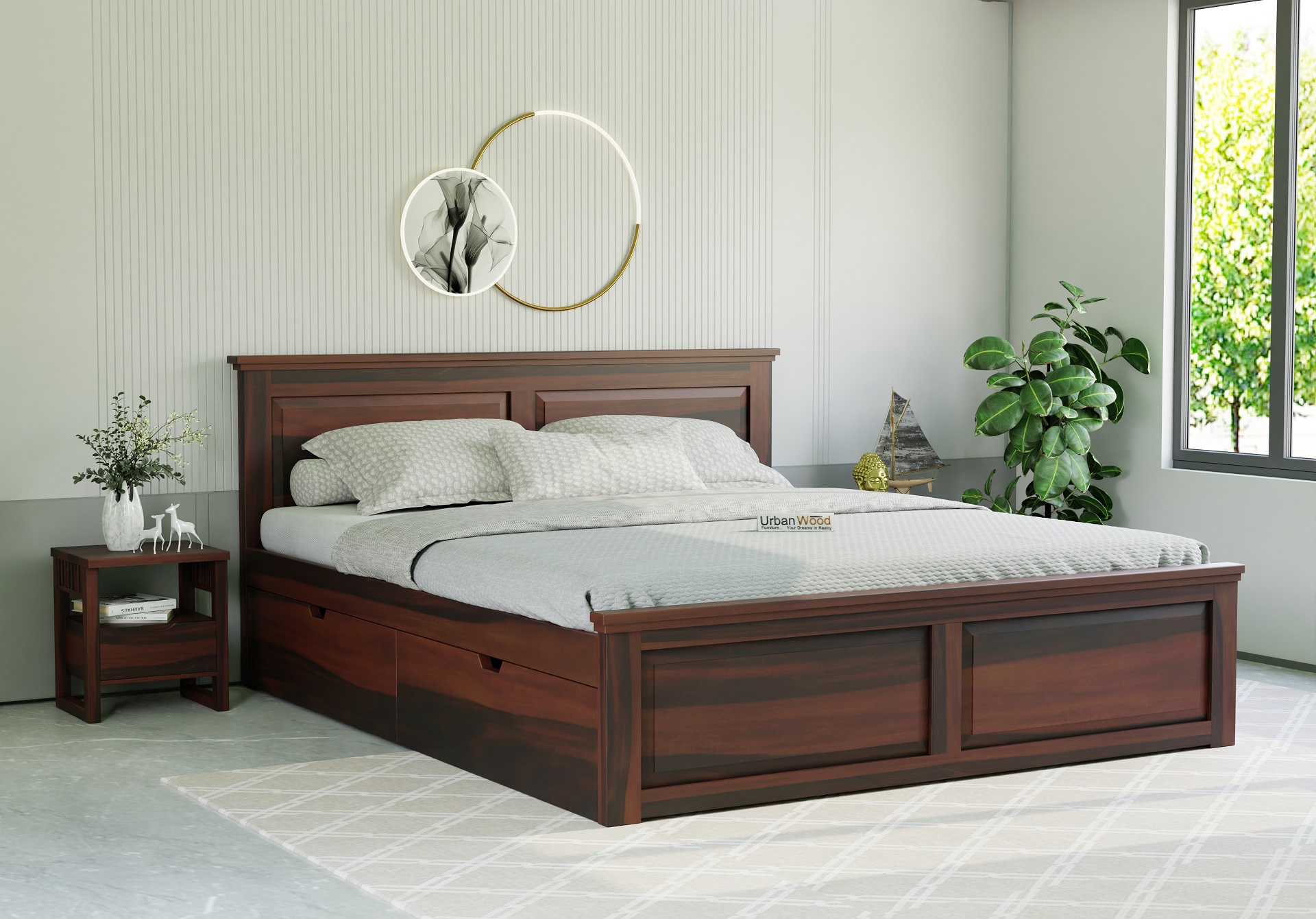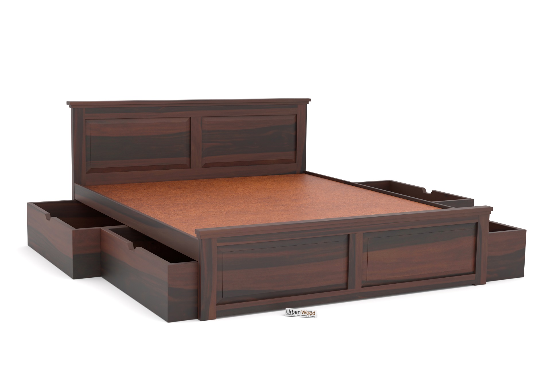 Ragnar Wooden Drawer Storage Bed (King Size, Walnut Finish)