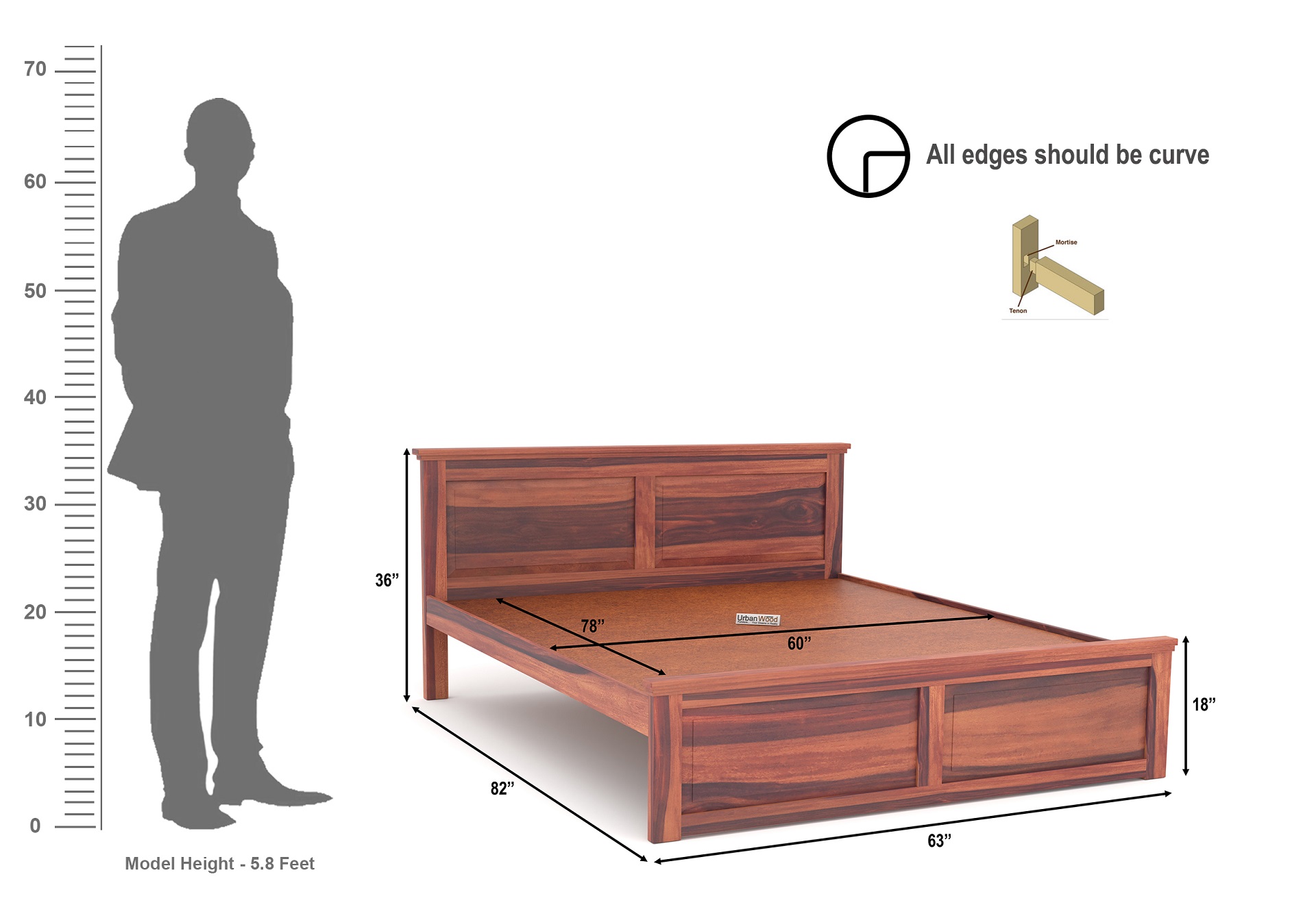 Generic Name -Ragnar Wooden Without Storage Bed (Queen Size, Teak Finish)