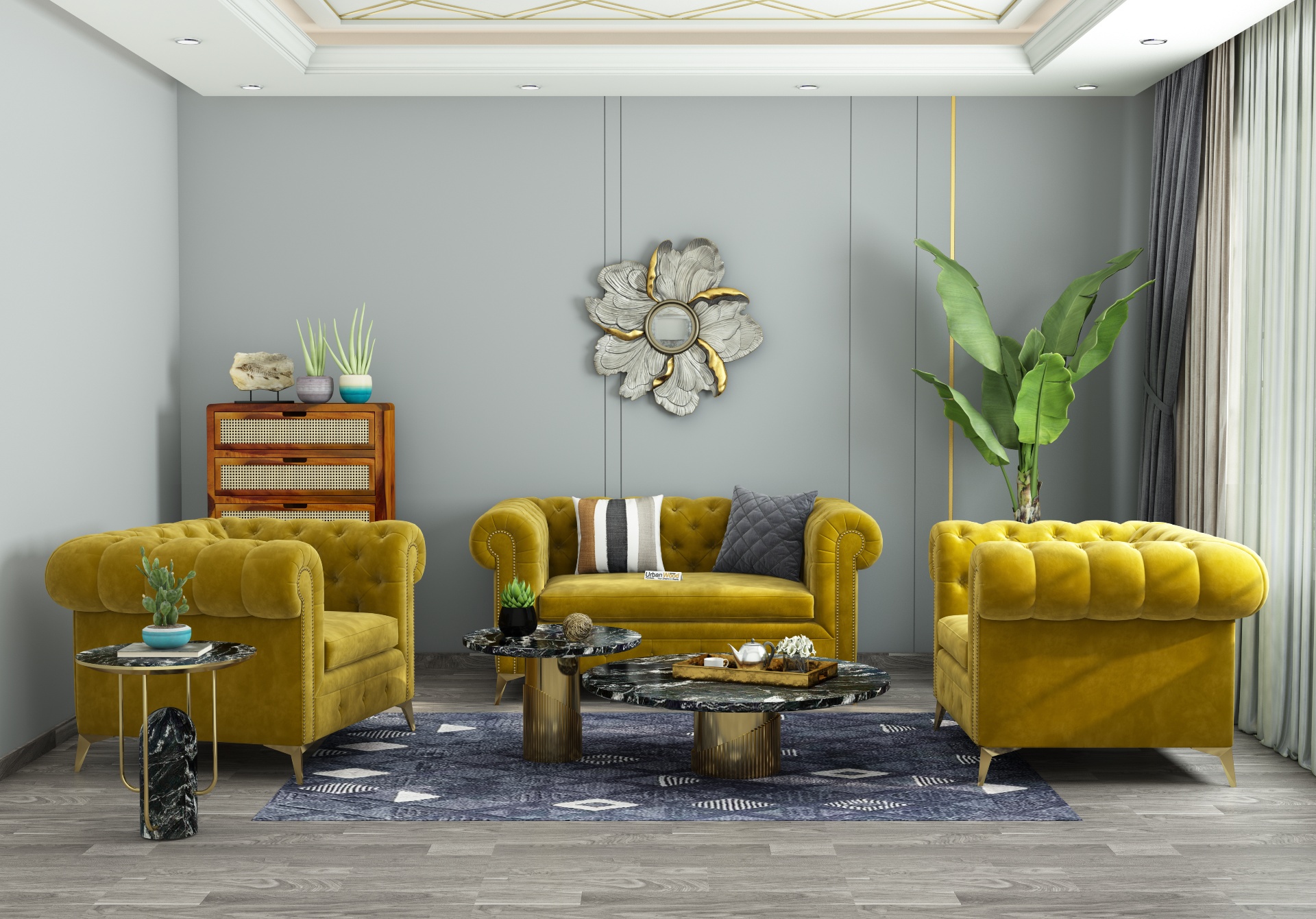 Generic Name -Regal 2+1+1 Seater Fabric Sofa (Velvet, Amber Gold)