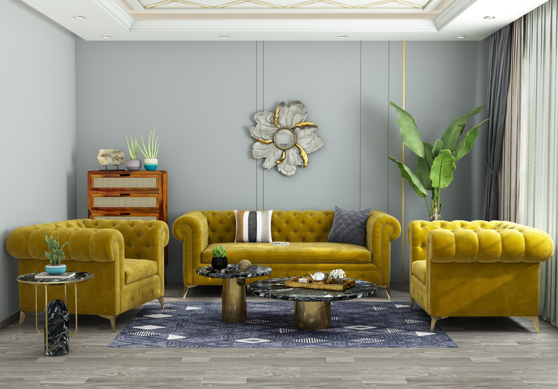Generic Name -Regal 3+1+1 Seater Fabric Sofa (Velvet, Amber Gold)