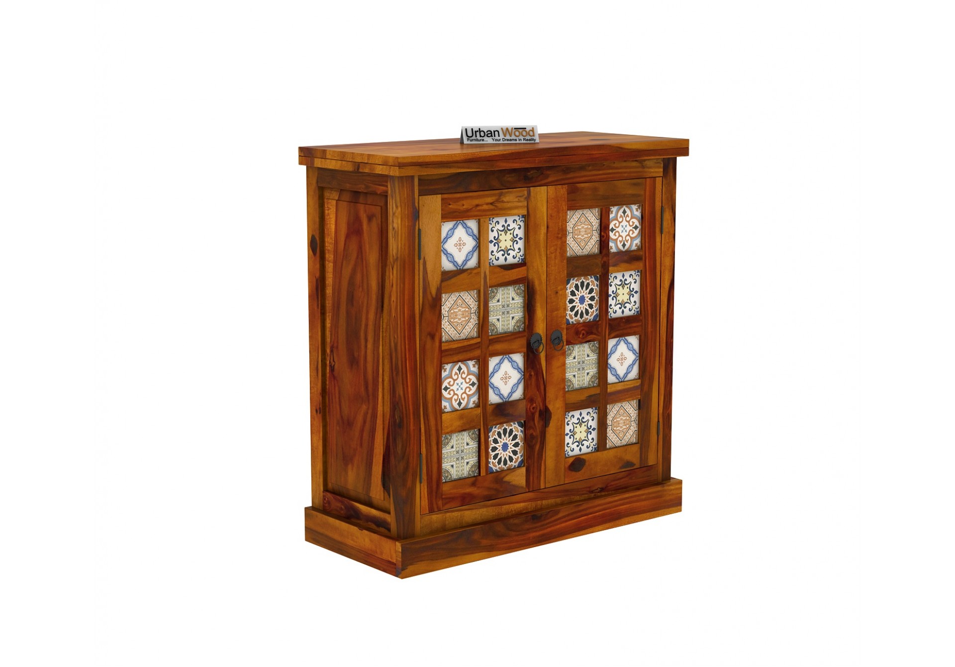 Ceramic is attractive and eye catchy for one and all. The Relay Cabinet has a beautiful ceramic carving on its outer portion and is manufactured with high grade sheesham wood.