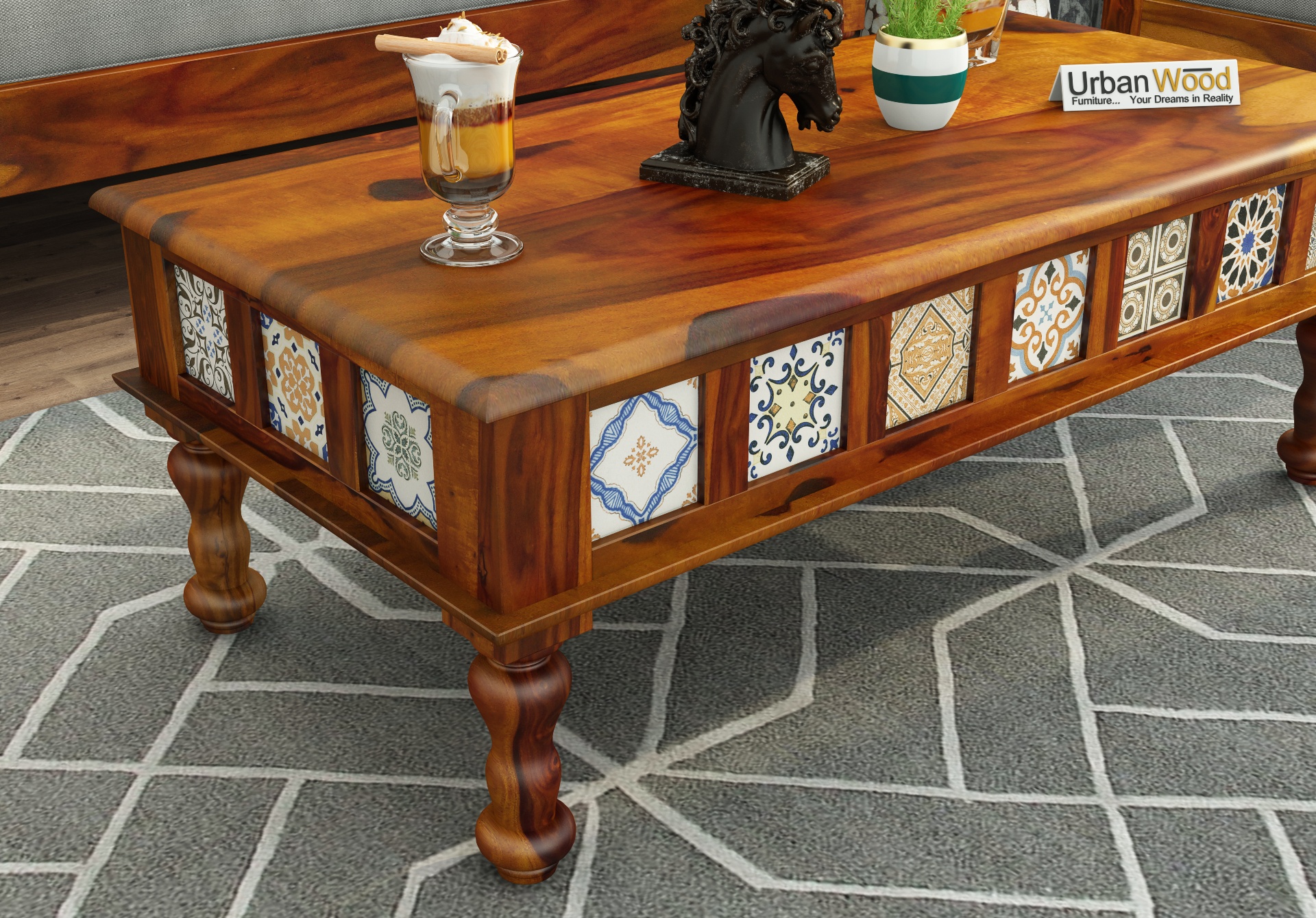 Generic Name -Relay Ceramic Tile Coffee Table (Honey Finish)