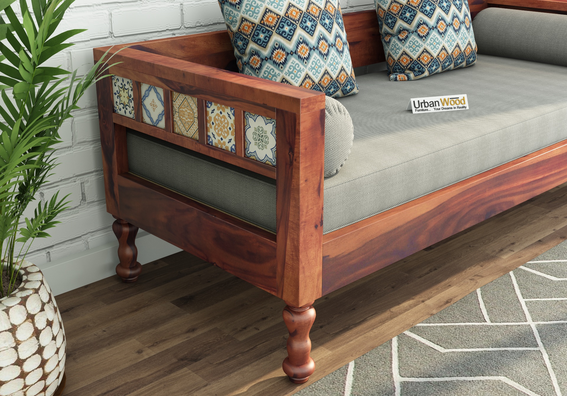 Generic Name -Relay Ceramic Tile Diwan (Teak Finish) Without Mattress
