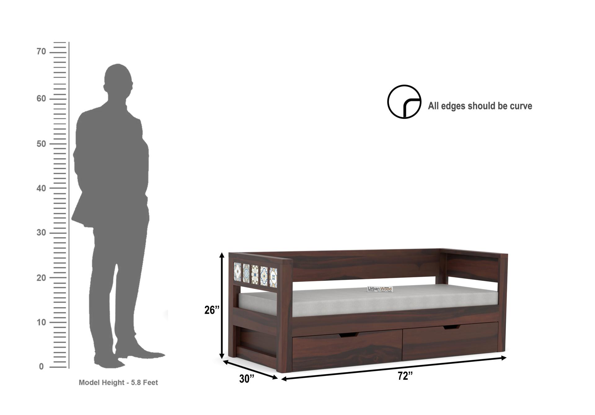 Relay Ceramic Tile Diwan With Storage (Walnut Finish) Without Mattress