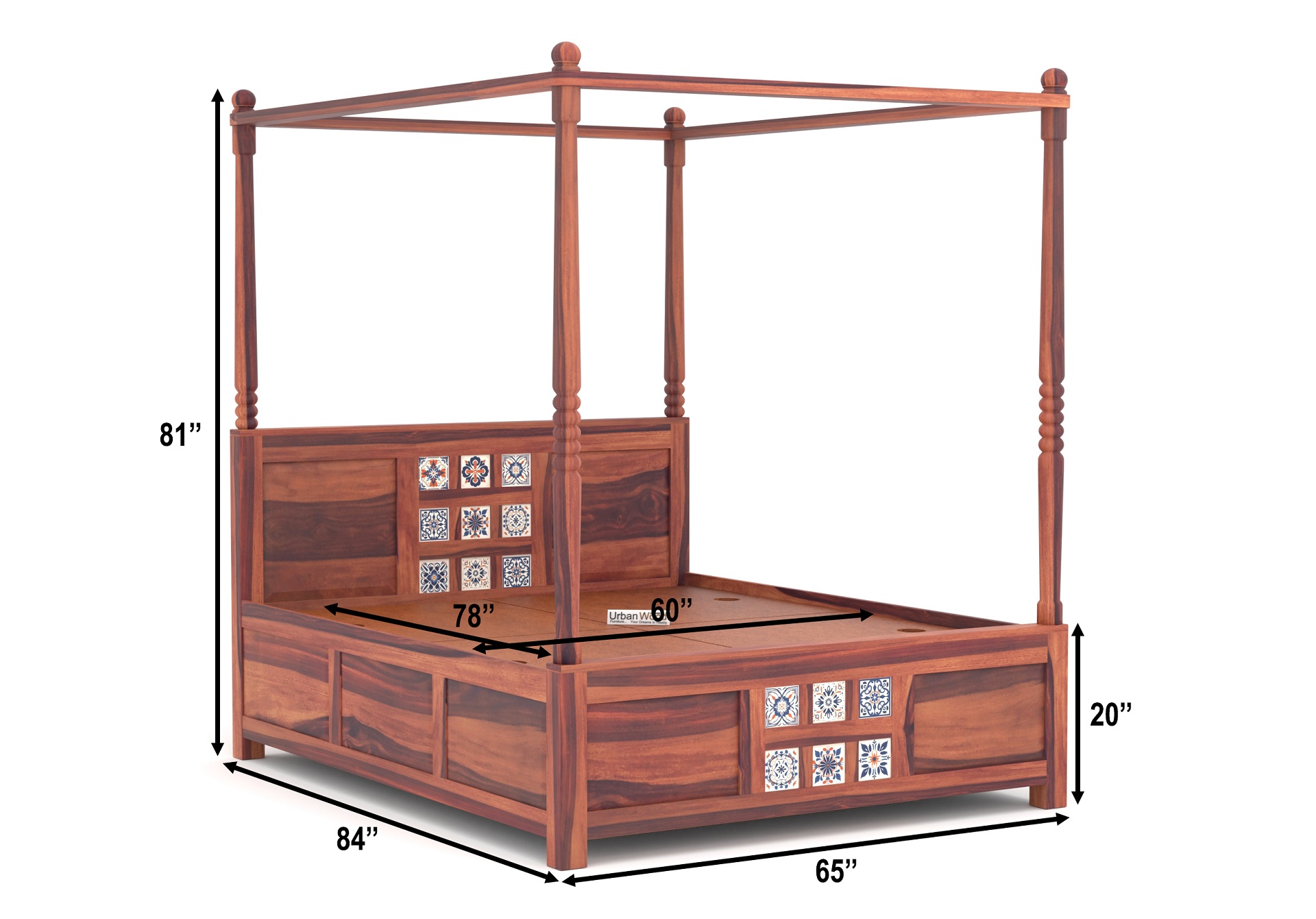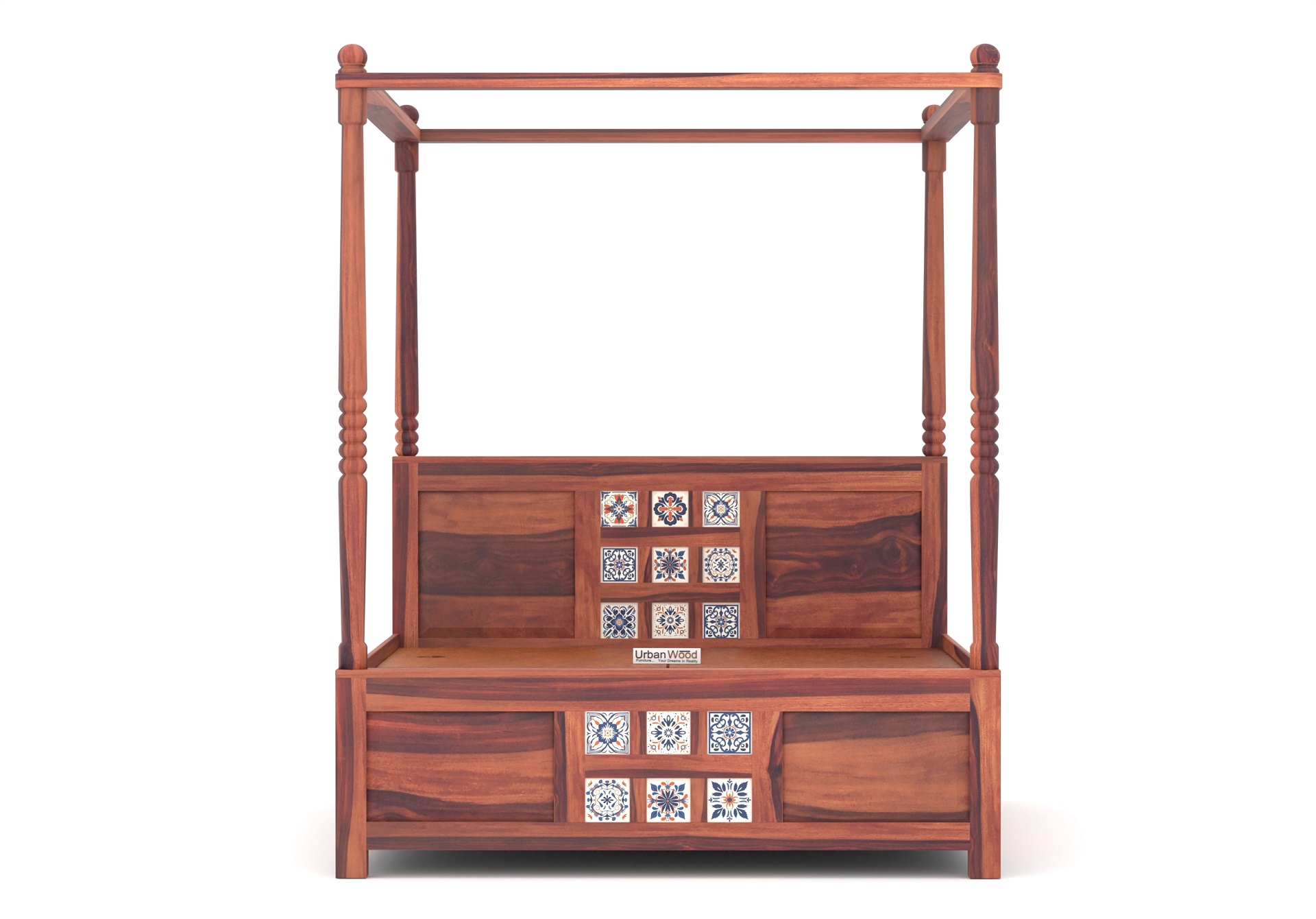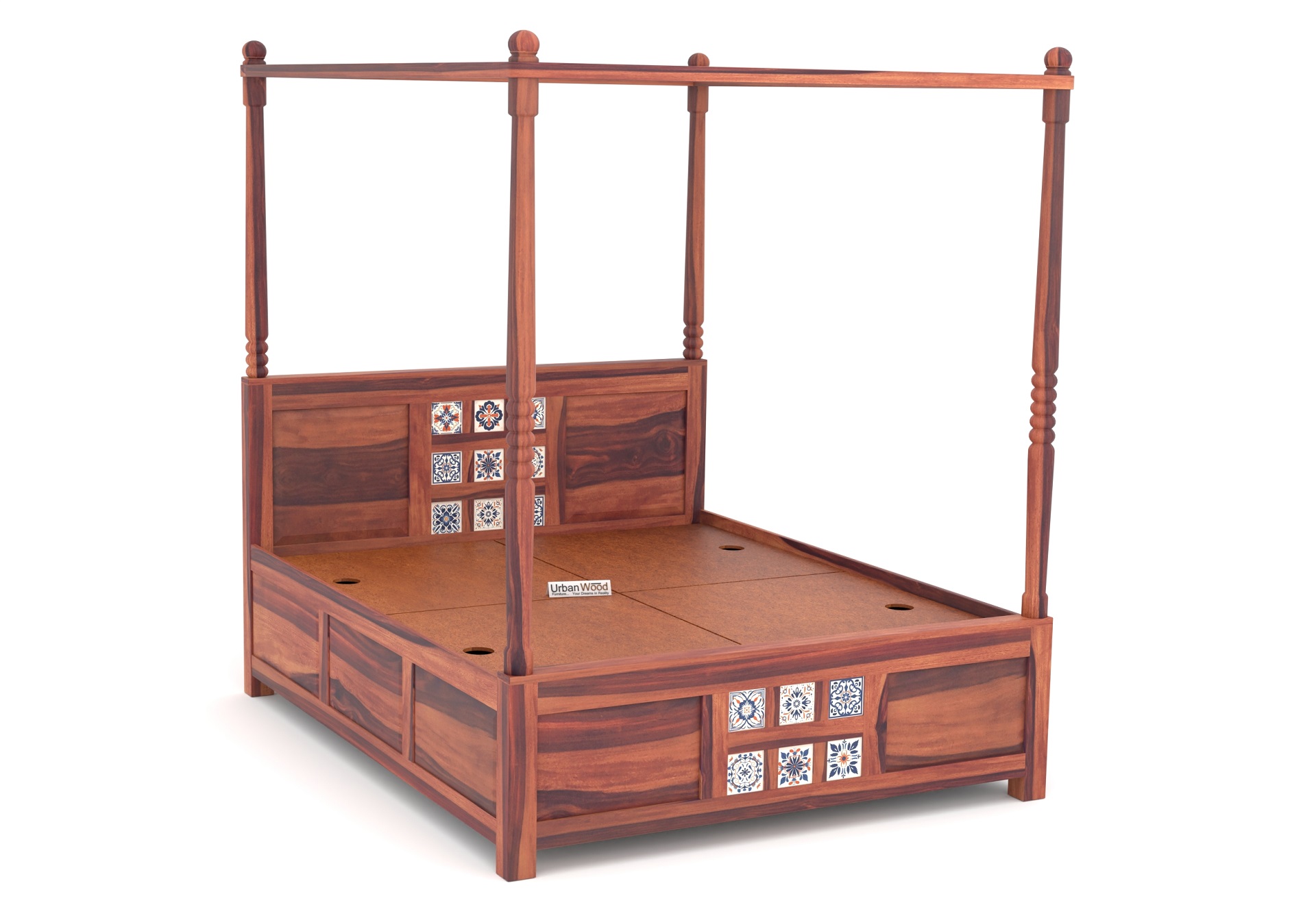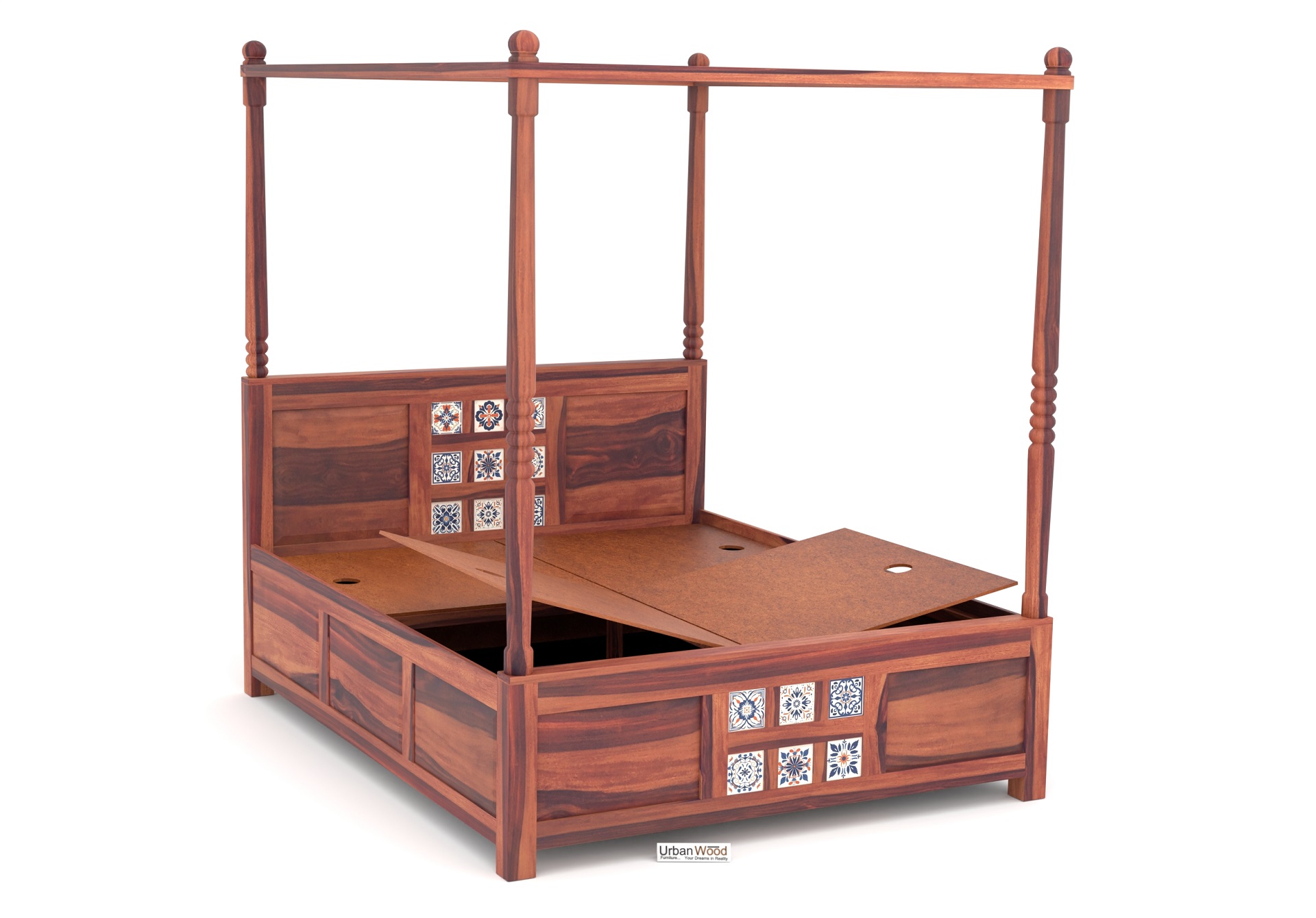 Relay Poster Bed With Box Storage (Queen Size, Teak Finish)