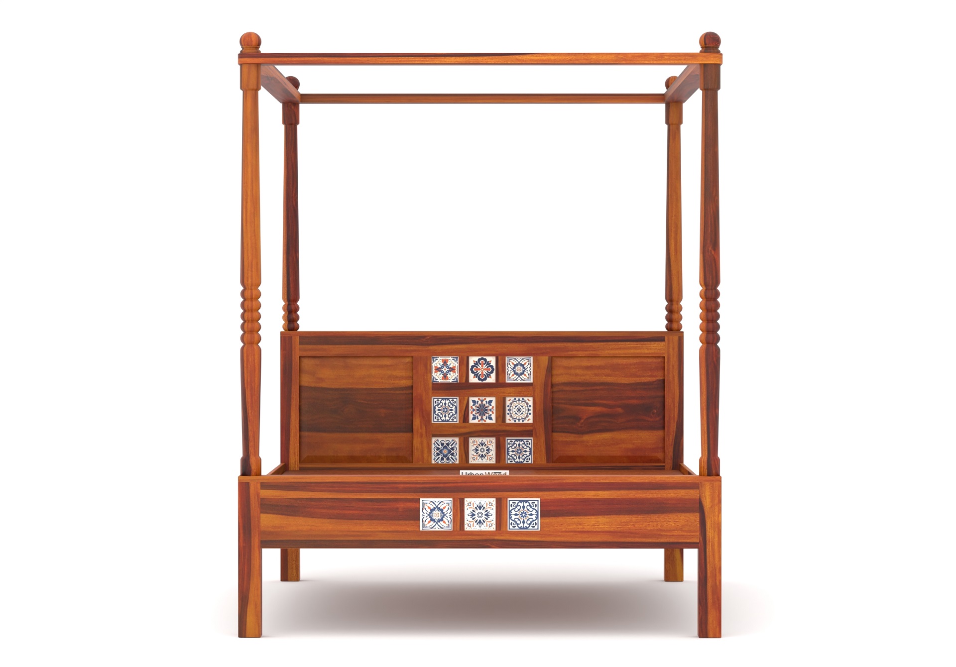 Relay Poster Bed Without Storage (Queen Size, Honey Finish)