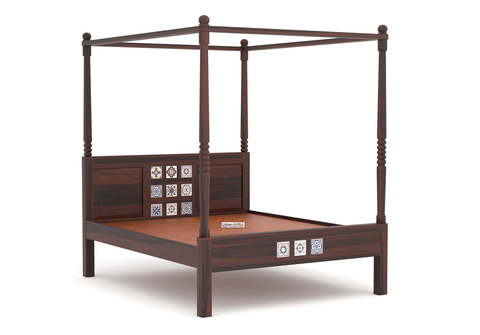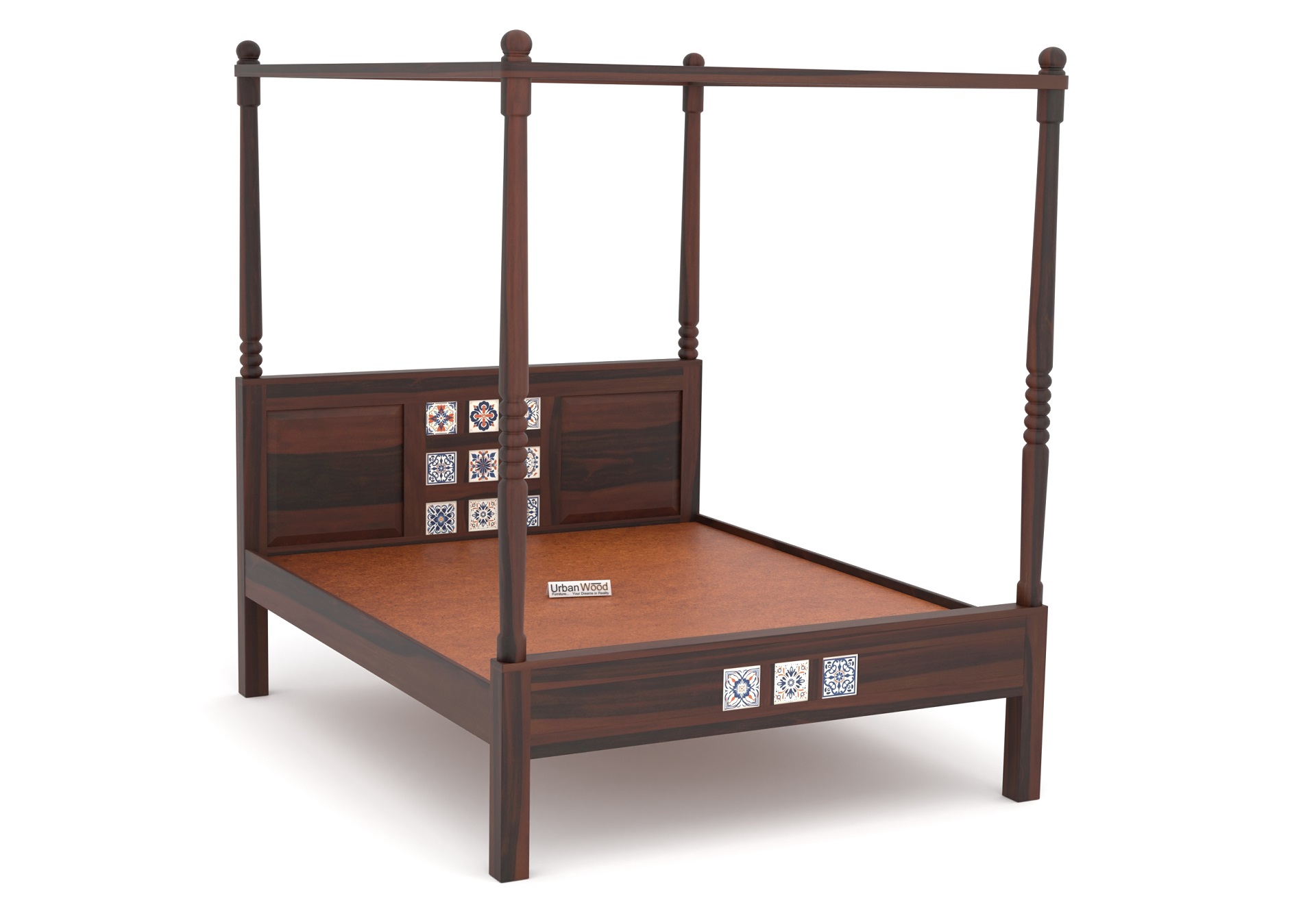 Relay Poster Bed Without Storage (Queen Size, Walnut Finish)